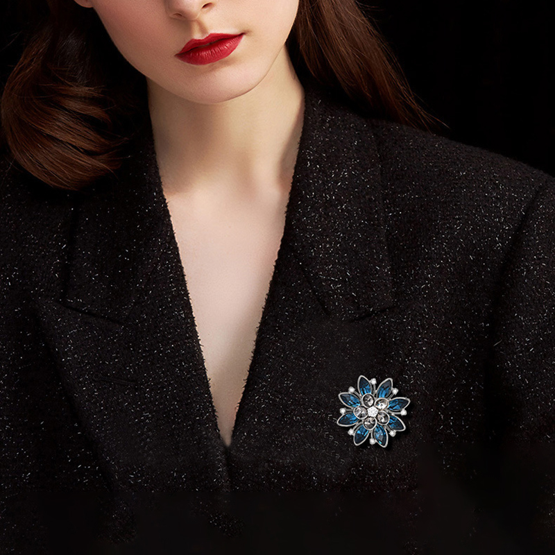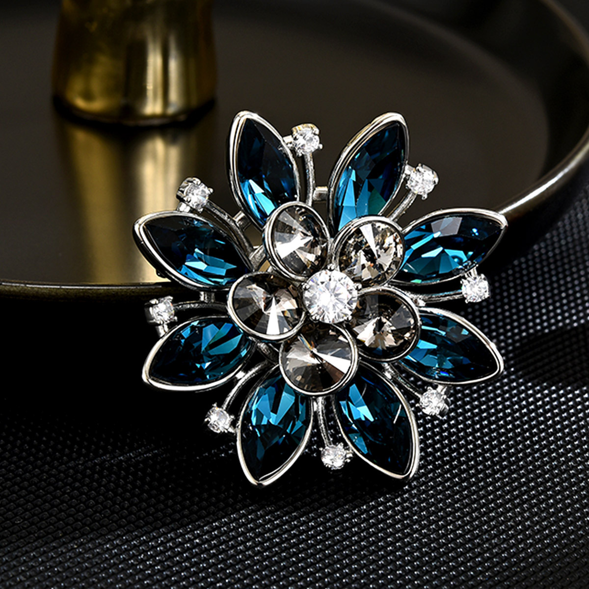 alliage de zinc broche, avec cristal, fleur, Placage de couleur platine, pour femme & facettes & avec strass, plus de couleurs à choisir Vendu par PC