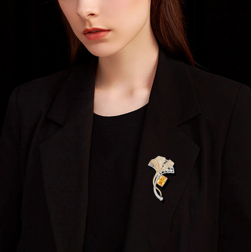 cristal Broche, laiton, avec Cristal autrichien, Placage, pavé de micro zircon & pour femme, argent, 56x35mm, Vendu par PC