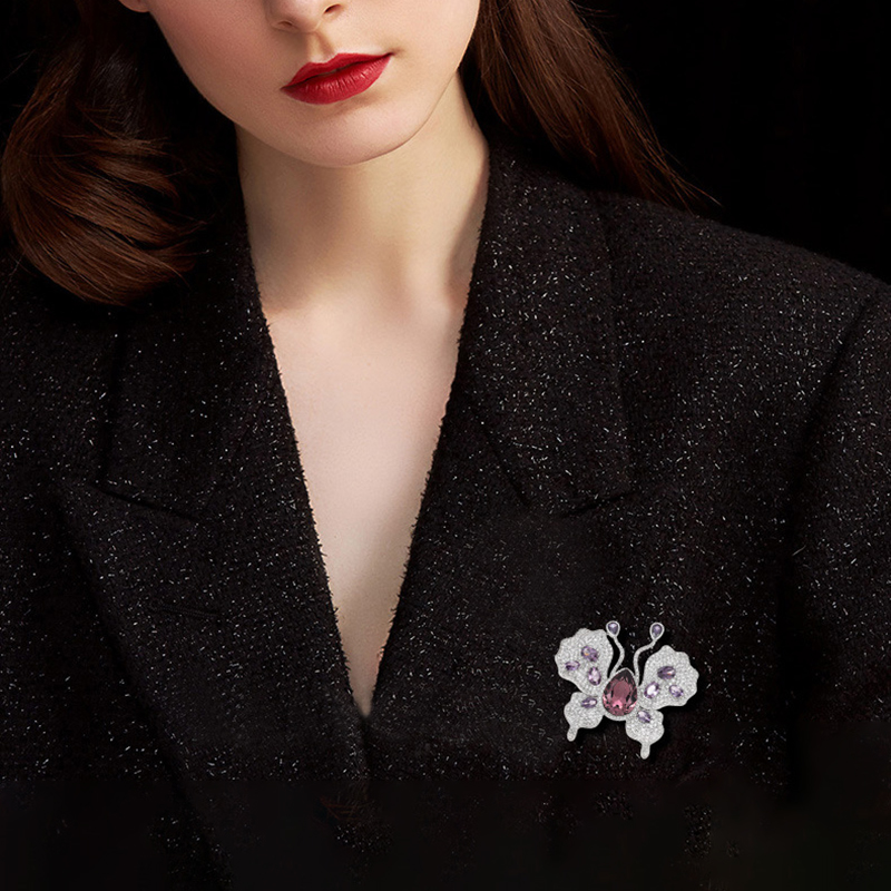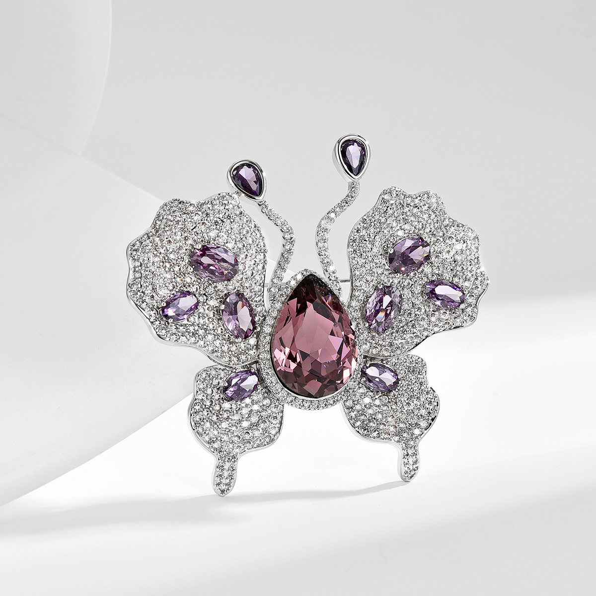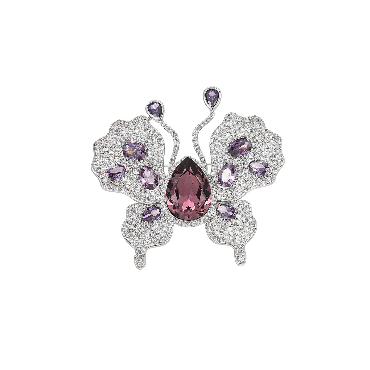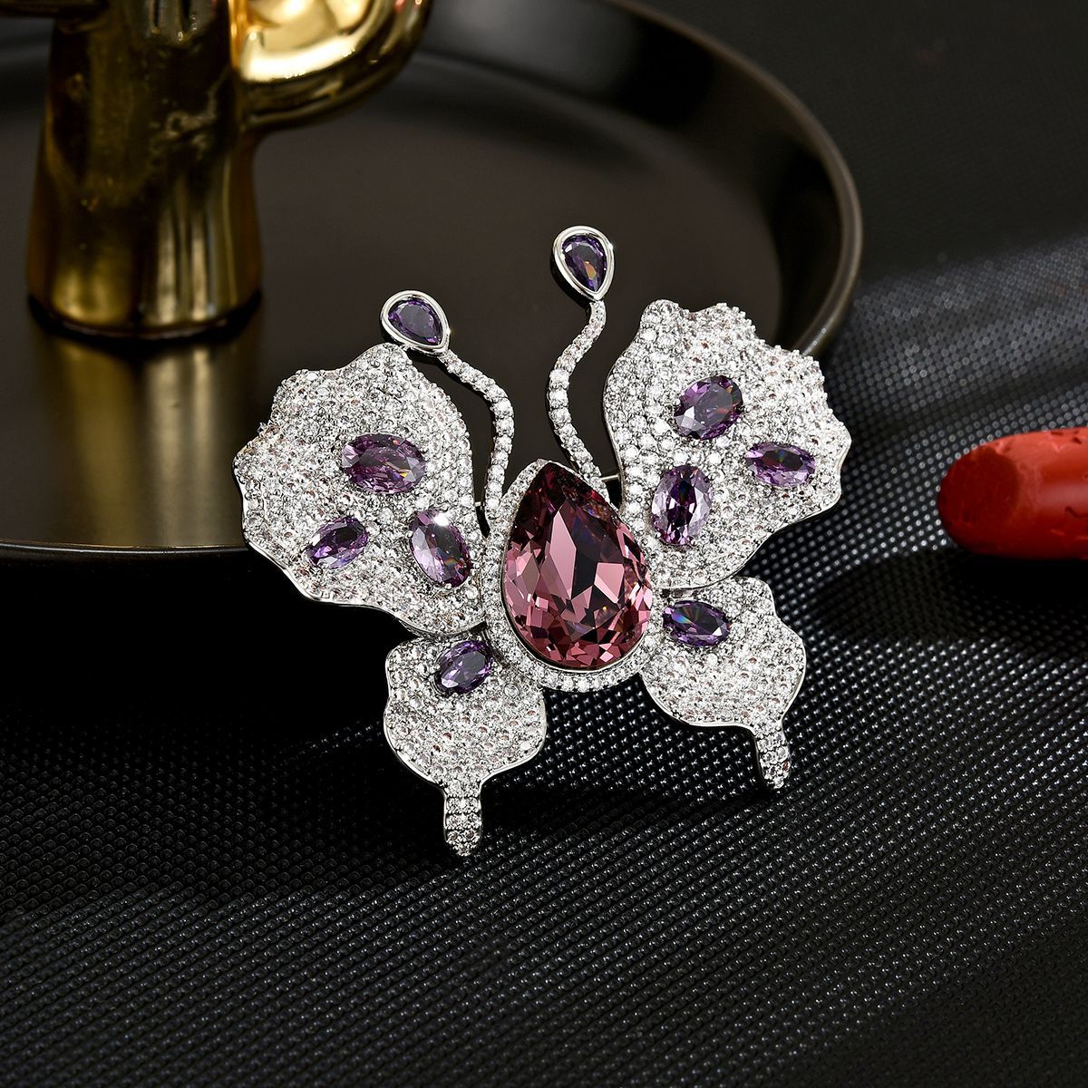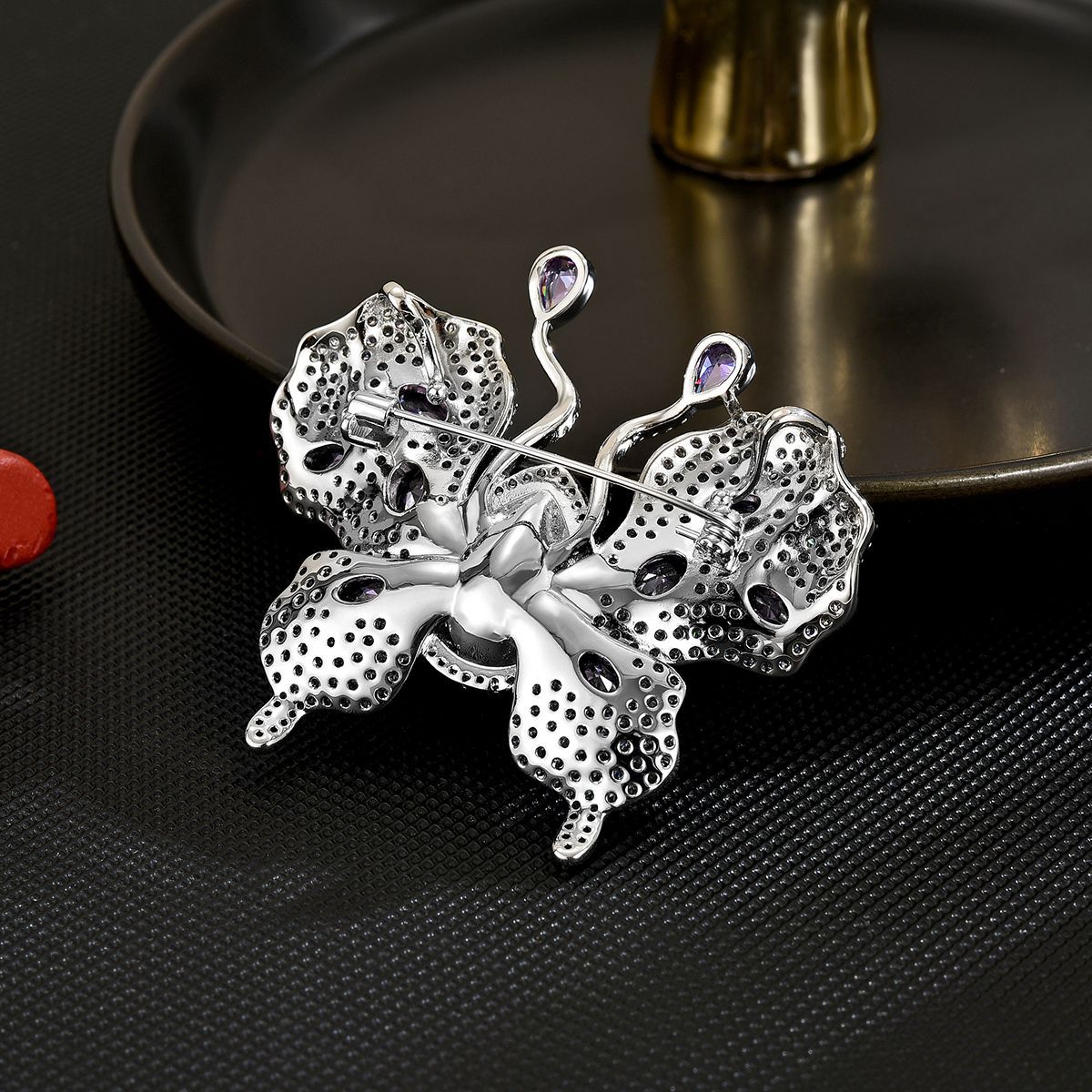 cristal Broche, laiton, avec Cristal autrichien, Placage, pavé de micro zircon & pour femme, argent, 52x55mm, Vendu par PC