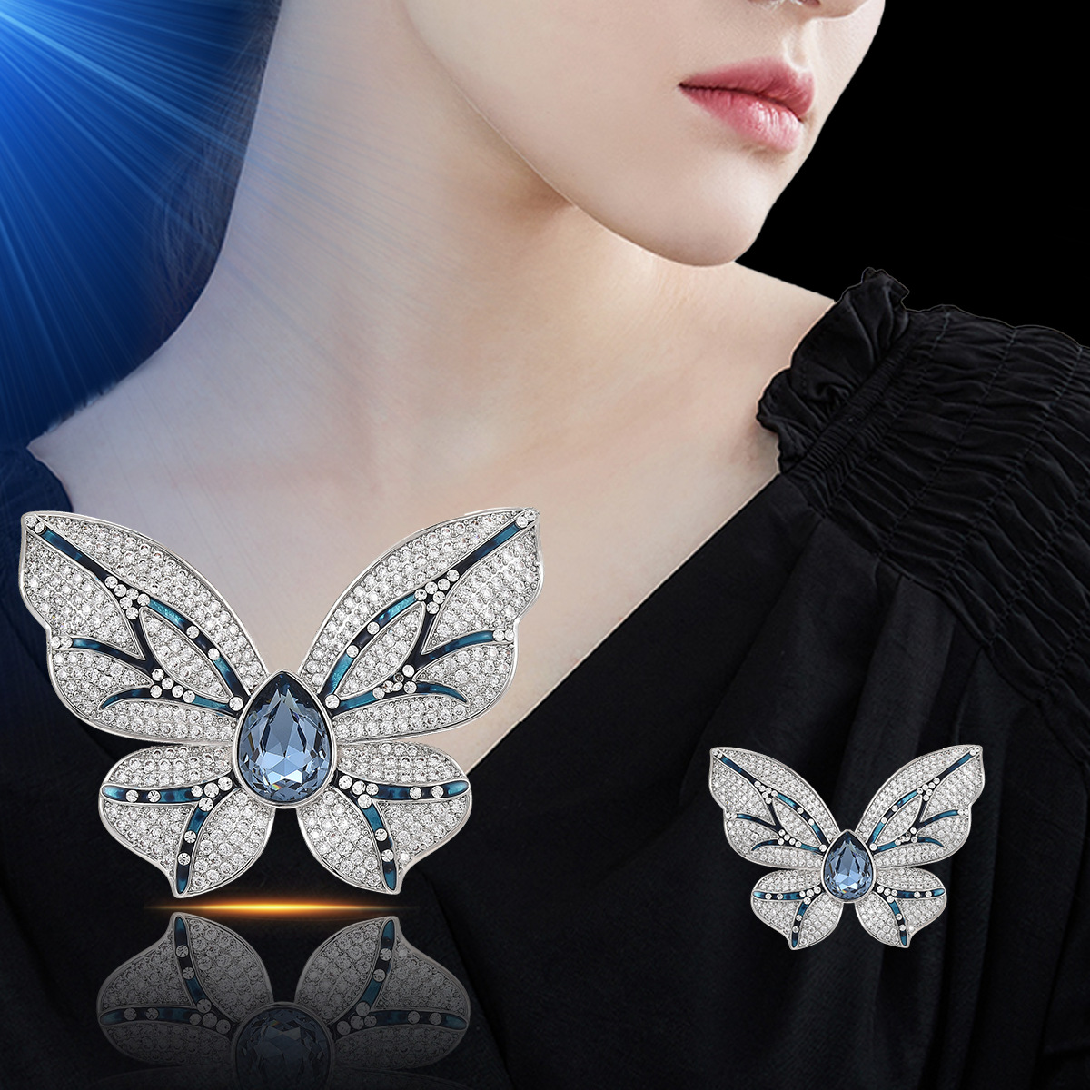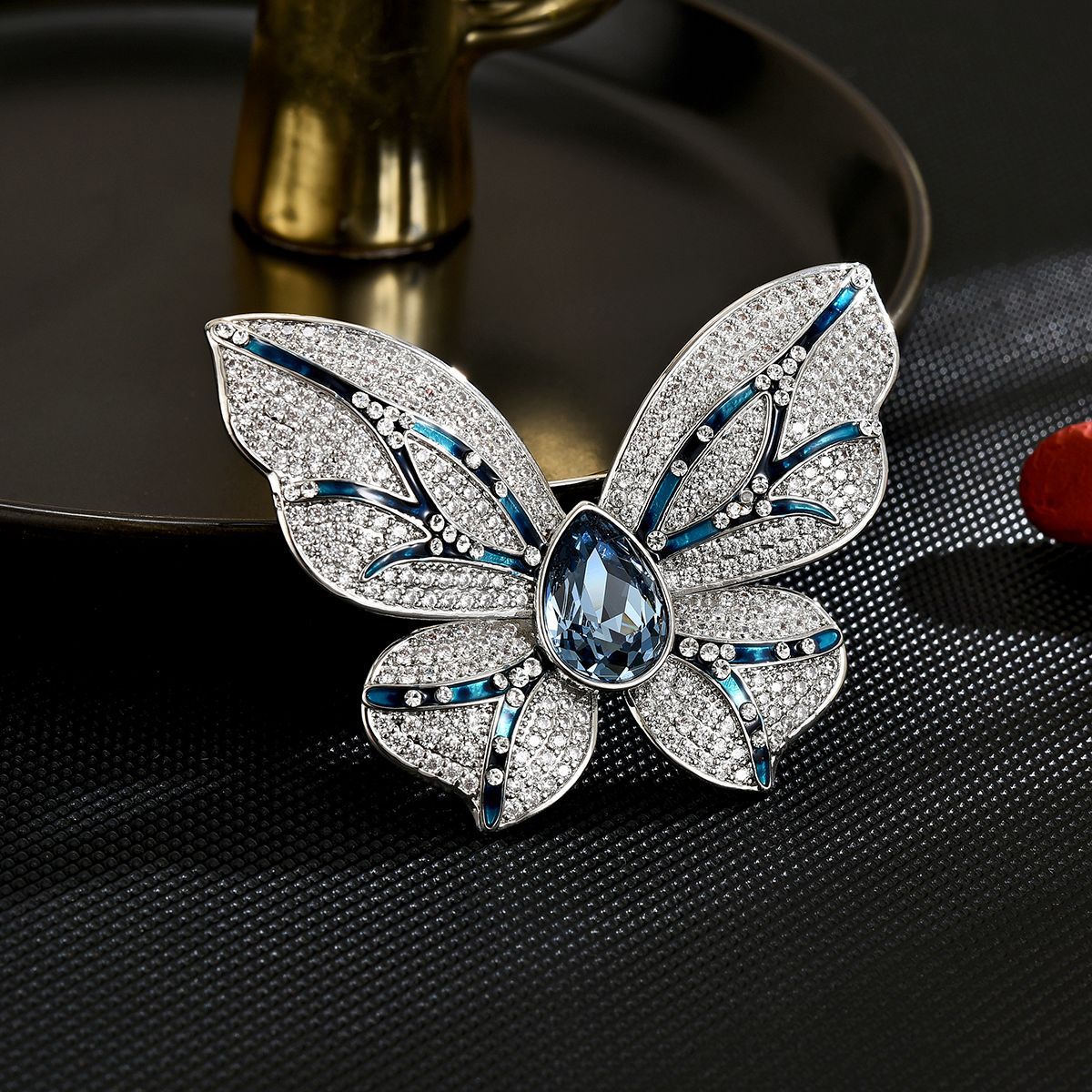 cristal Broche, laiton, avec Cristal autrichien, Placage, pavé de micro zircon & pour femme, argent, 43x58mm, Vendu par PC