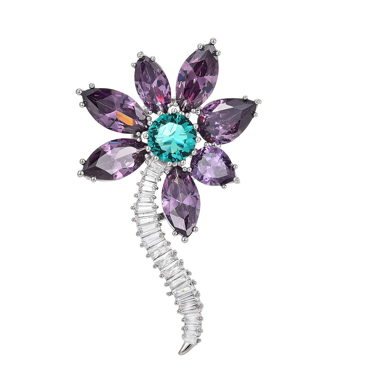 cristal Broche, alliage de zinc, avec cristal, fleur, Placage de couleur argentée, facettes & avec strass, protéger l'environnement, sans nickel, plomb et cadmium Vendu par PC