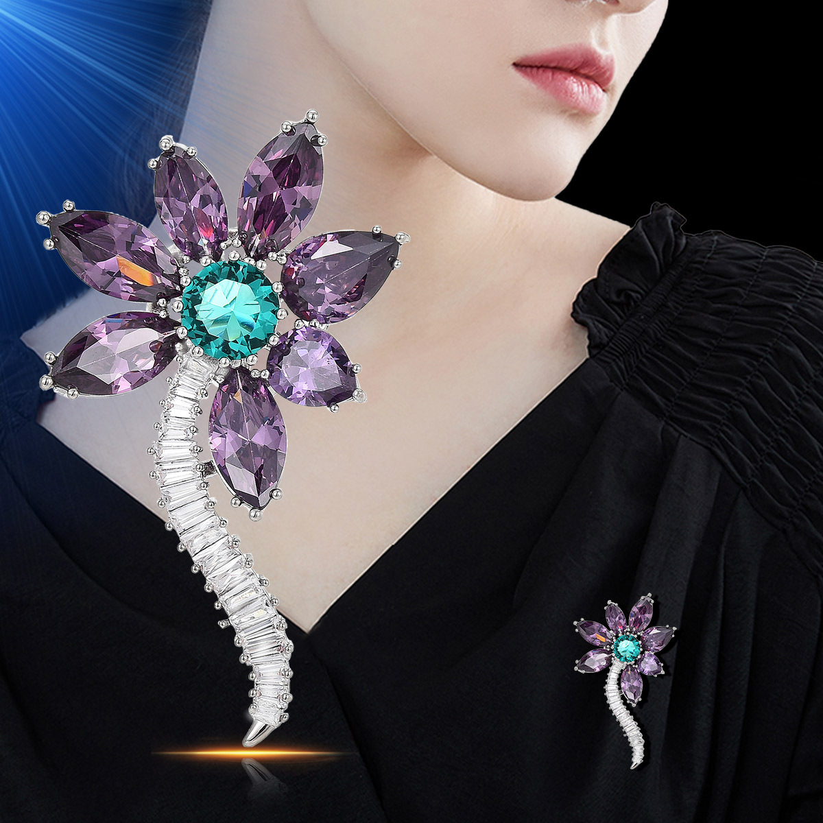 cristal Broche, alliage de zinc, avec cristal, larme, Placage de couleur noire de plumbum, facettes & avec strass, protéger l'environnement, sans nickel, plomb et cadmium Vendu par PC