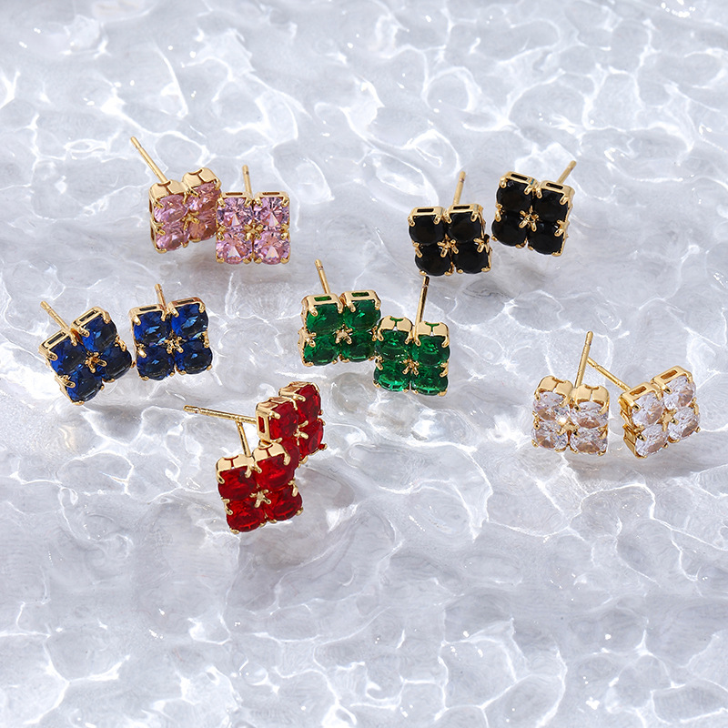 cristal boucle d oreille dormeuse, avec alliage de zinc, Motif géométrique, Placage de couleur d'or, bijoux de mode & pour femme, plus de couleurs à choisir, 10mm, Vendu par paire