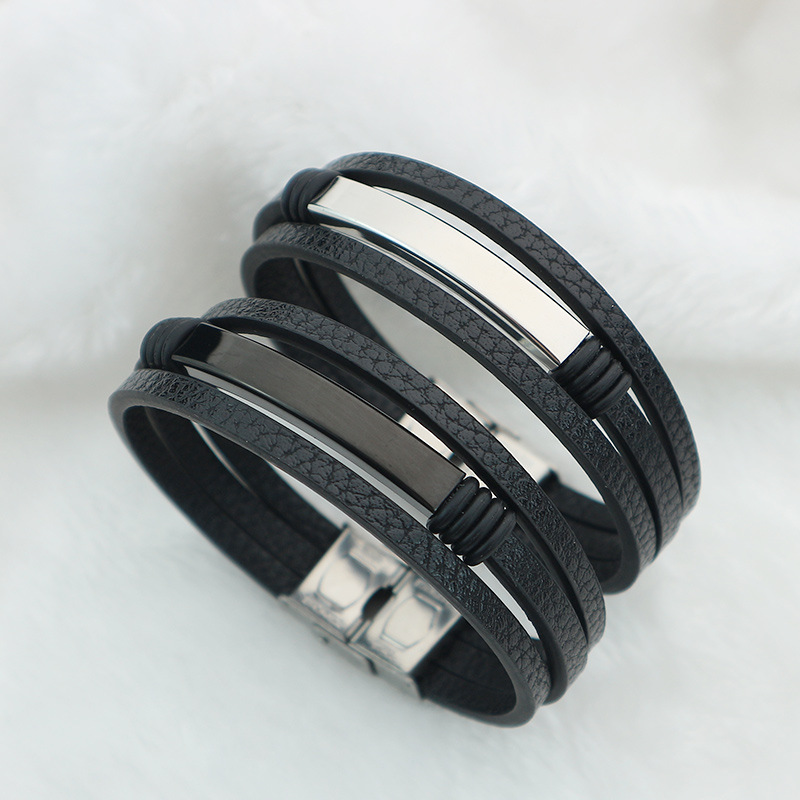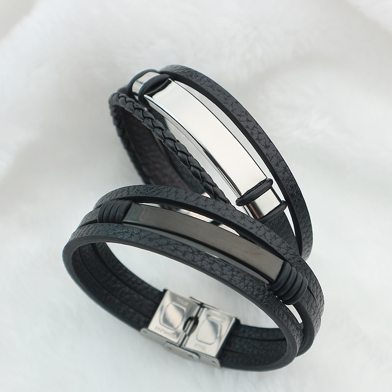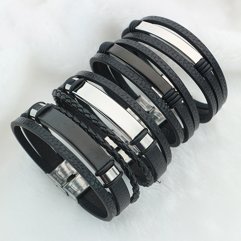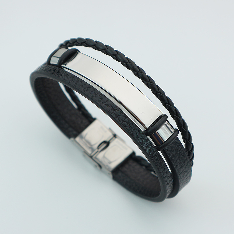 bracelet de cordon en PU , alliage de zinc, avec cuir PU & Acier inoxydable 304, fait à la main, pour homme, noire, Vendu par PC