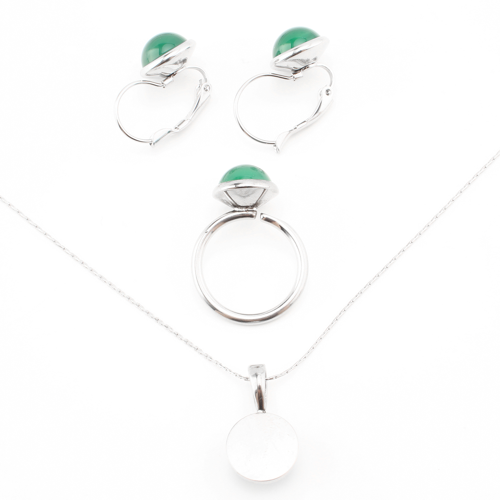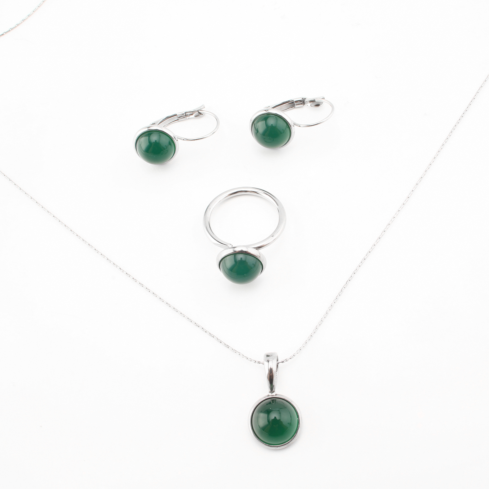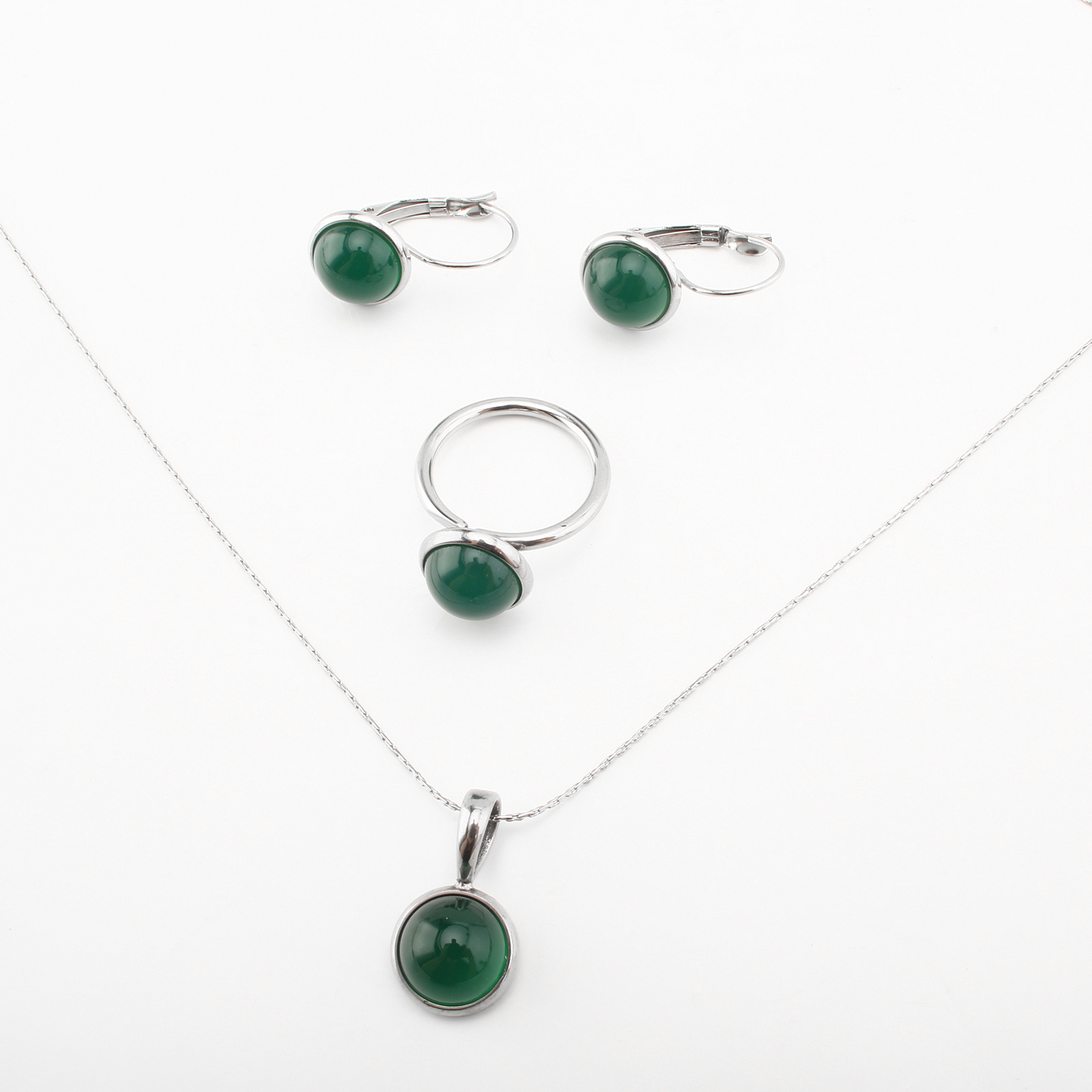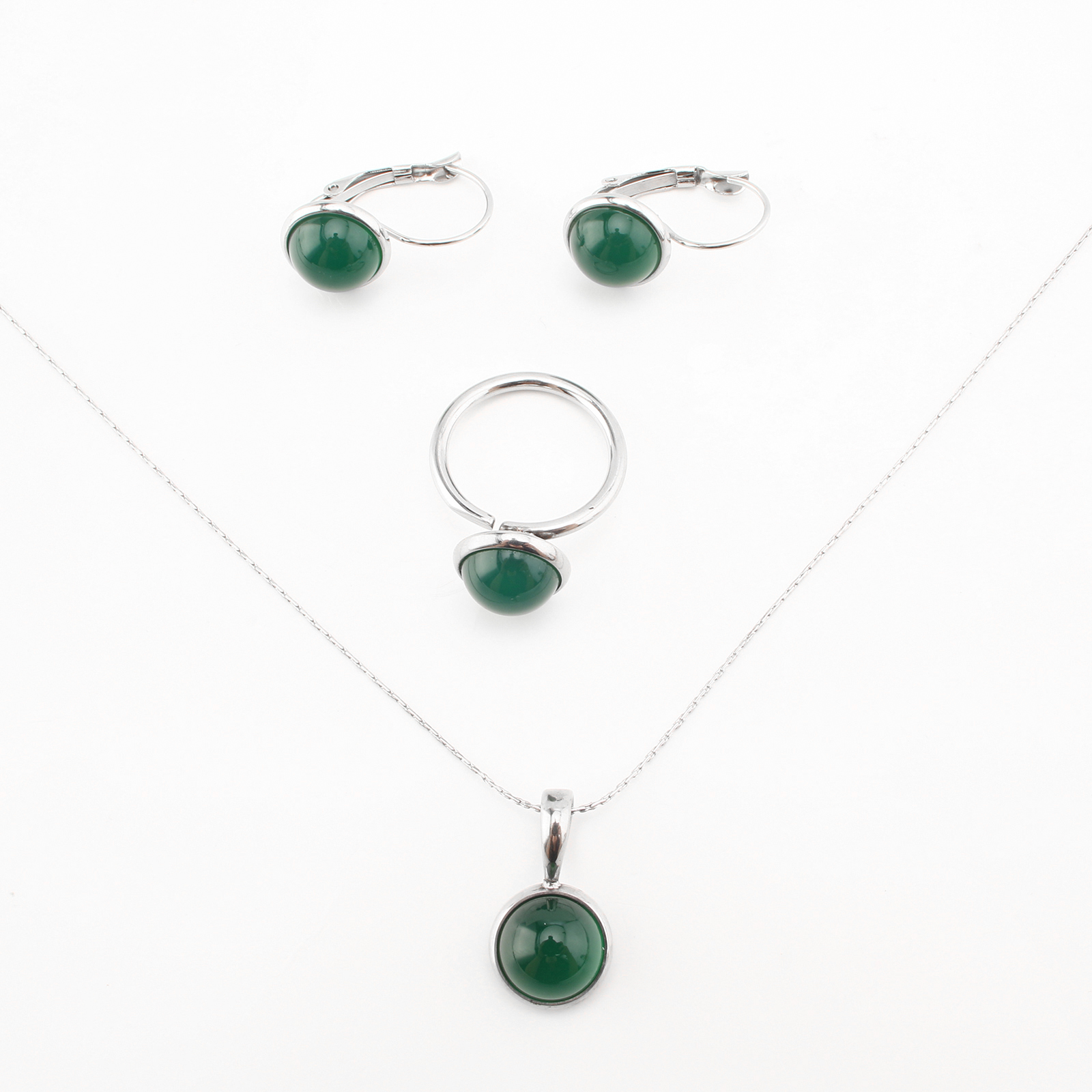 ensemble de bijoux d'agate, Acier inoxydable 304, avec agate verte, bijoux de mode & styles différents pour le choix & pour femme, couleur originale, Vendu par PC
