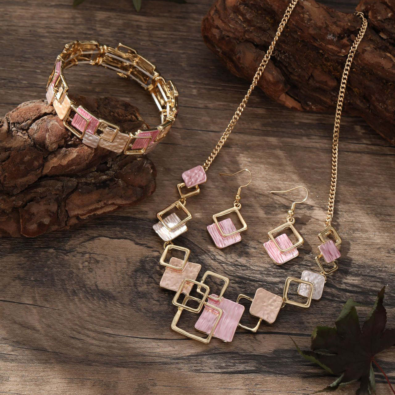 ensemble de bijoux en alliage zinc et émail, alliage de zinc, boucle d'oreille & collier, avec émail & Acrylique, Placage, 2 pièces & pour femme, plus de couleurs à choisir, protéger l'environnement, sans nickel, plomb et cadmium, Vendu par fixé