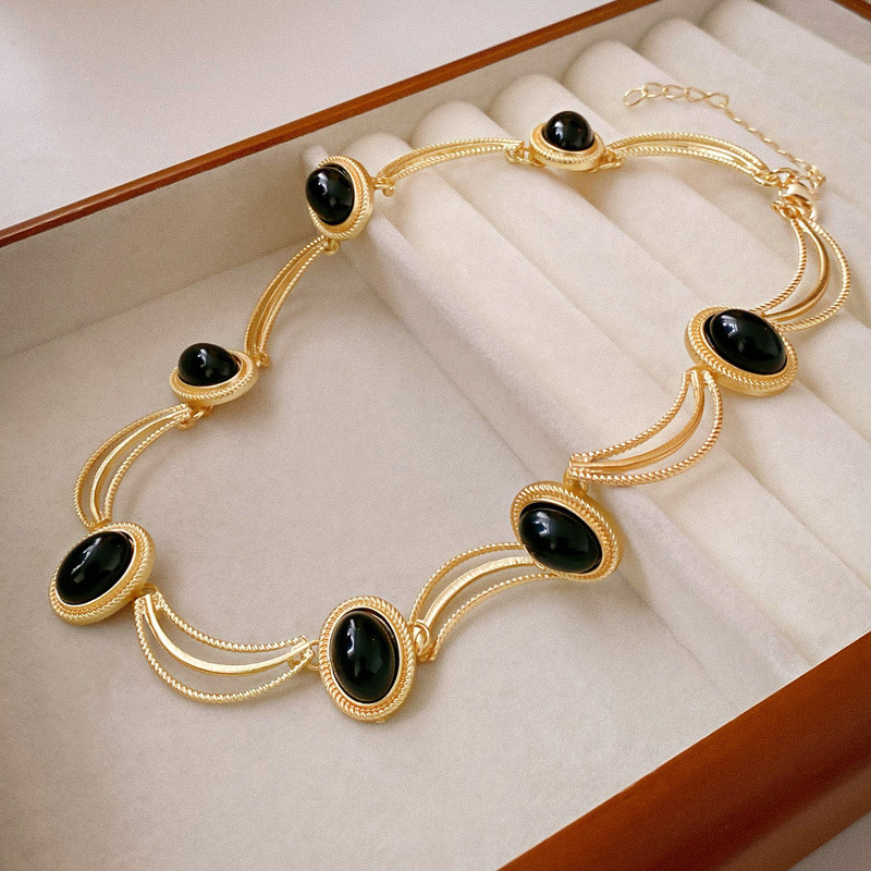 ensembles de bijoux de mode en alliage zinc, alliage de zinc, avec Gemme synthétique, Placage de couleur d'or, styles différents pour le choix & pour femme & creux, noire, Necklace :36.5x9.5cm; Stud earrings :1.5x2cm., Vendu par PC