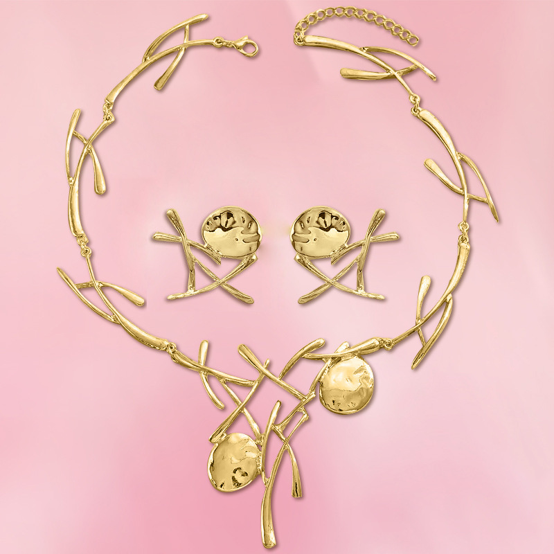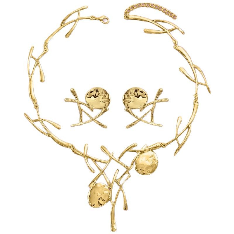 ensembles de bijoux de mode en alliage zinc, alliage de zinc, Boucle d’oreille stud & colliercol, 2 pièces & pour femme & creux, plus de couleurs à choisir, Vendu par fixé