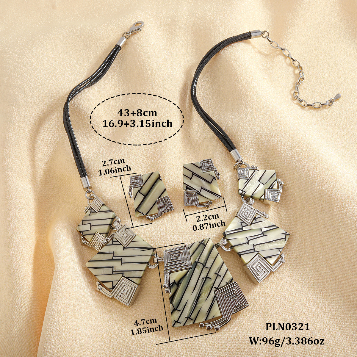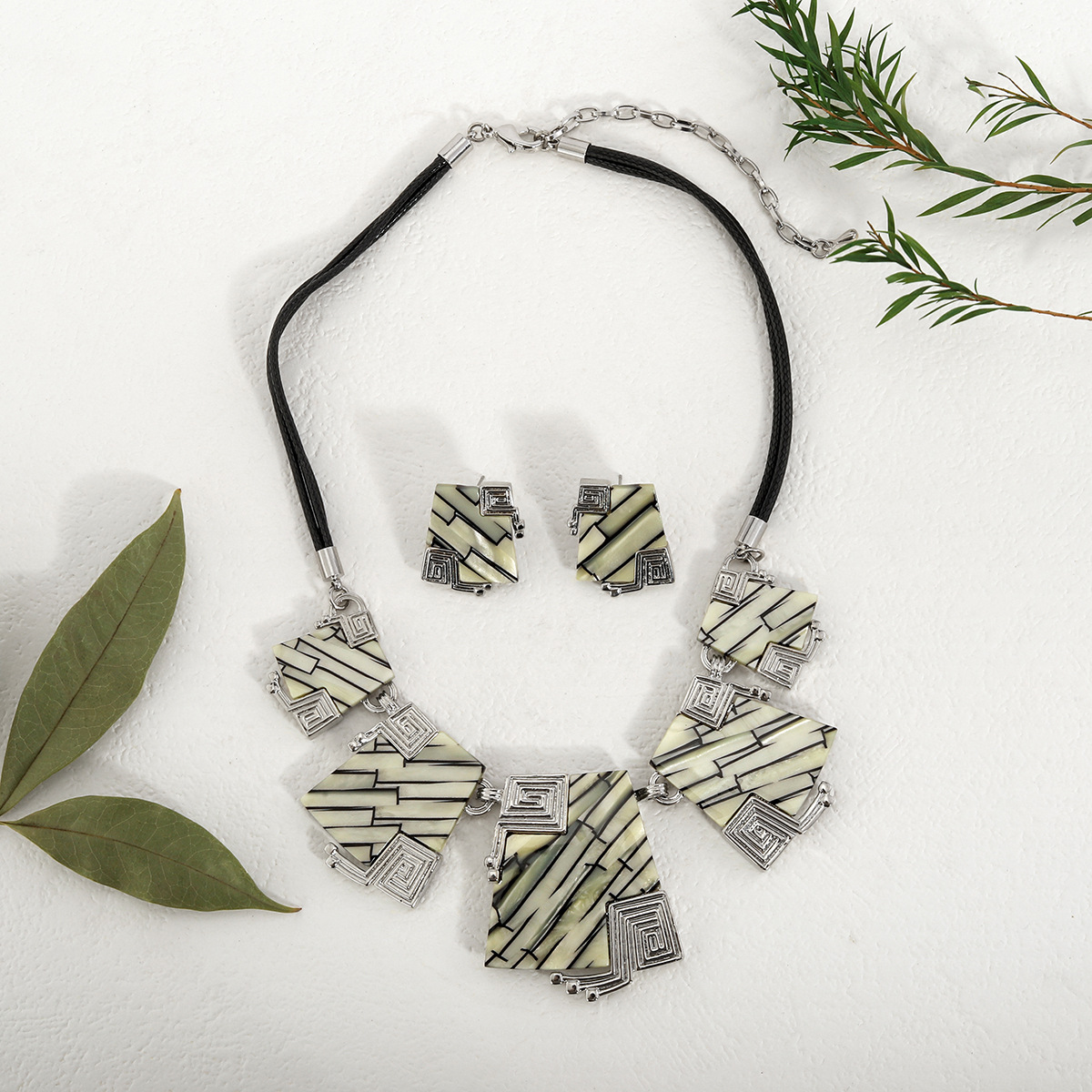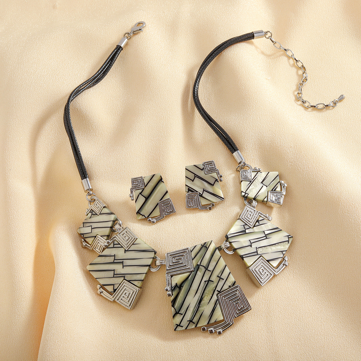 ensembles de bijoux de mode en alliage zinc, alliage de zinc, Boucle d’oreille stud & collier, avec cordon en cuir & planche, Placage, 2 pièces & Double couche & pour femme, Vendu par fixé