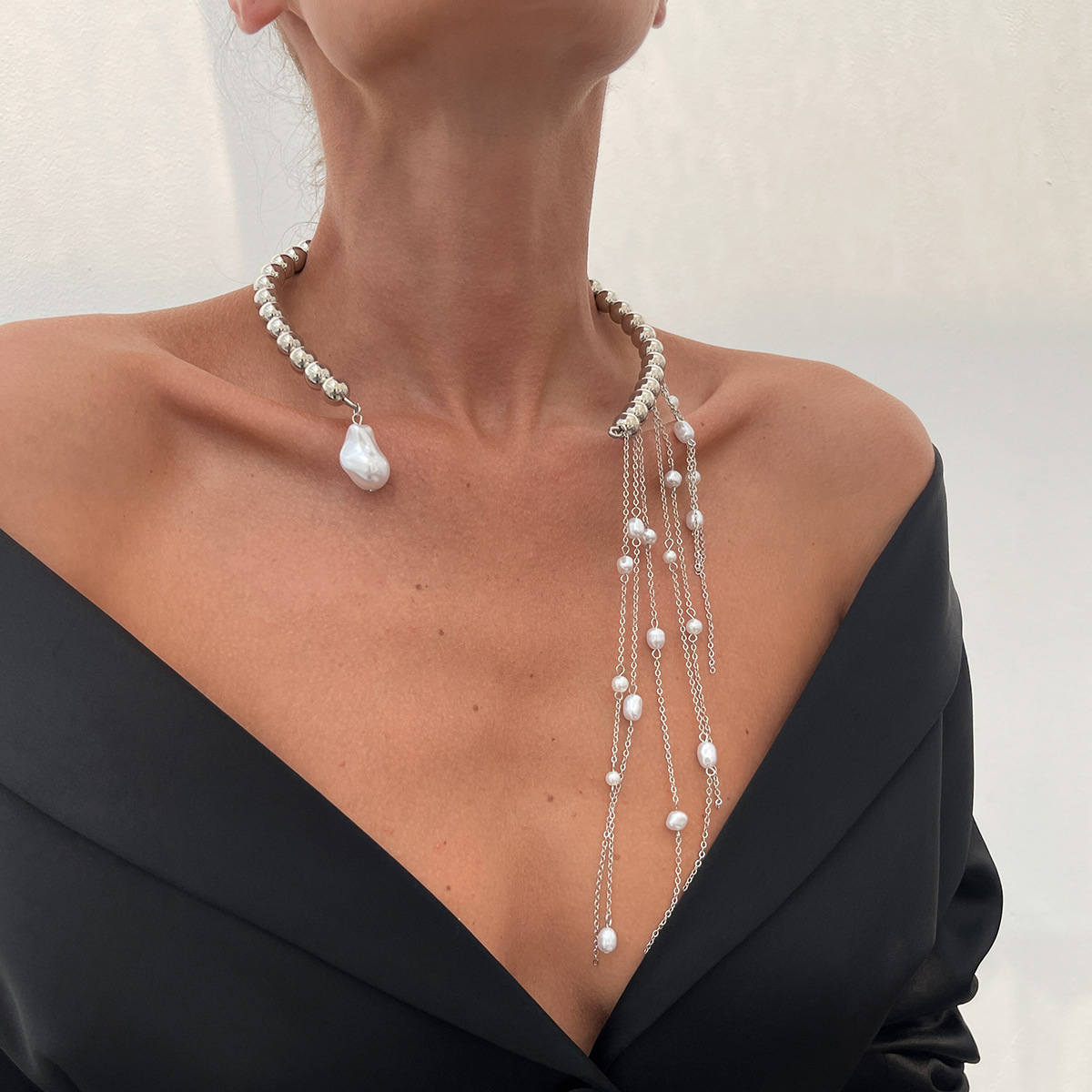 alliage de zinc parure de bijoux, Boucle d’oreille stud & collier, avec Plastique ABS perle, acier inoxydable puce boucle d'oreille, avec 5cm chaînes de rallonge, branche, Placage, pour femme & avec strass, plus de couleurs à choisir, sans plomb et cadmium, 36mm Environ 17 pouce, Vendu par fixé
