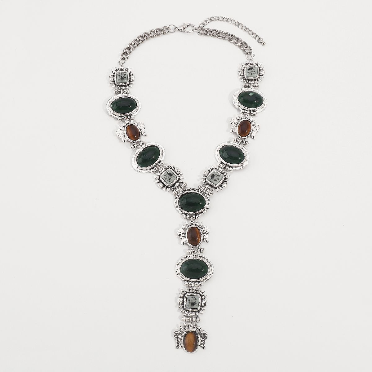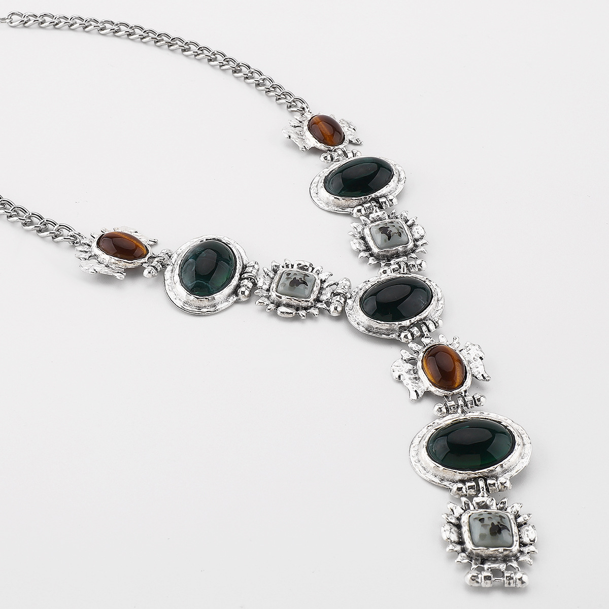 ensembles de bijoux de mode en alliage zinc, alliage de zinc, boucle d'oreille & collier, avec résine, Plaqué de couleur d'argent, plus de couleurs à choisir, sans plomb et cadmium  Environ 17 pouce, Vendu par fixé