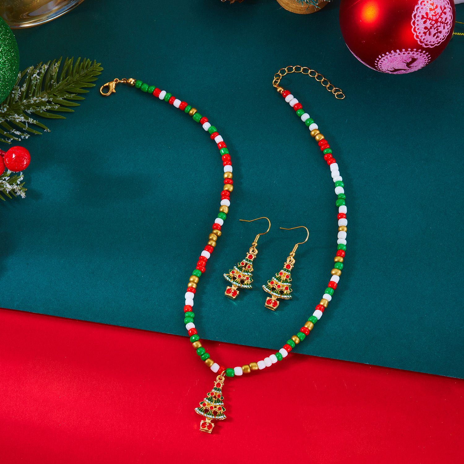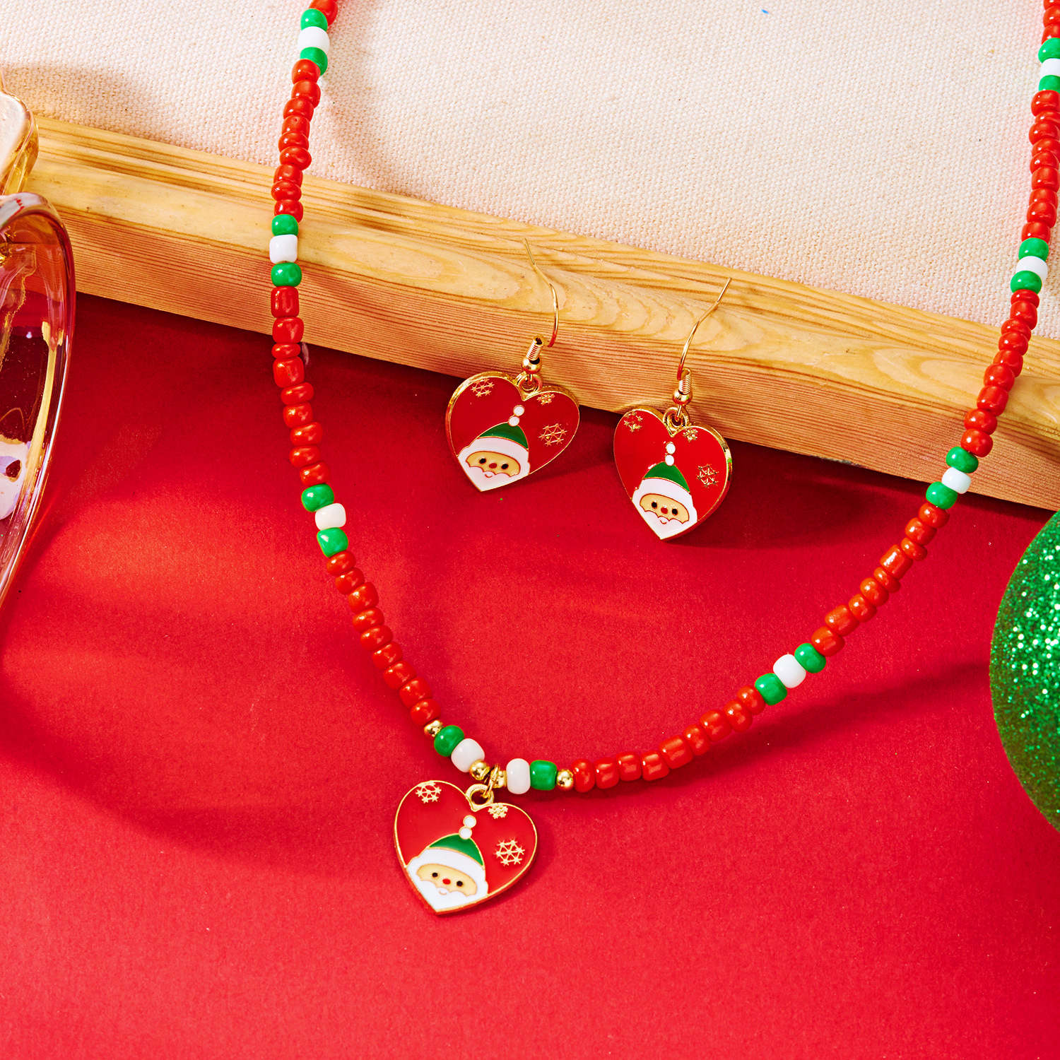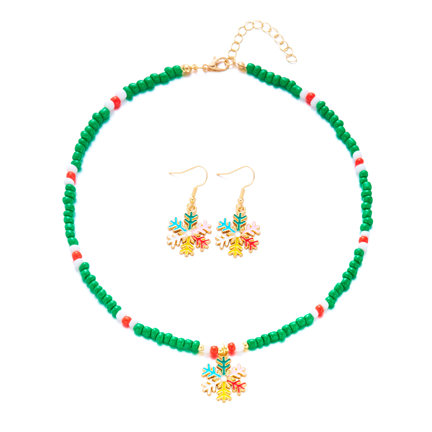 ensembles de bijoux de perles de graine en verre, alliage de zinc, boucle d'oreille & collier, avec Seedbead, Placage de couleur d'or, Conception de Noël & émail & avec strass, plus de couleurs à choisir, Vendu par fixé
