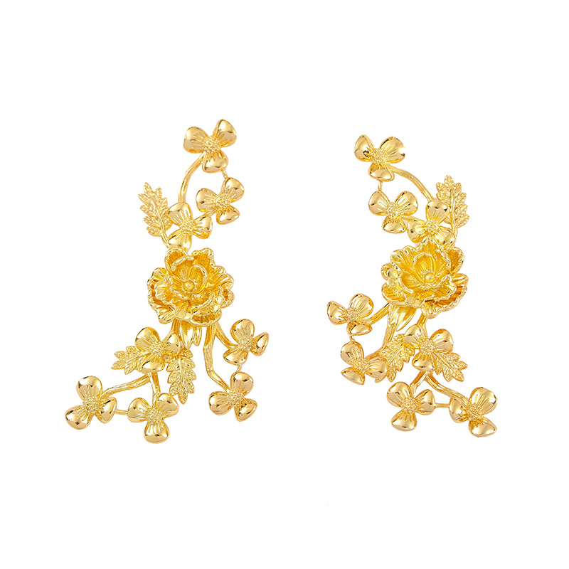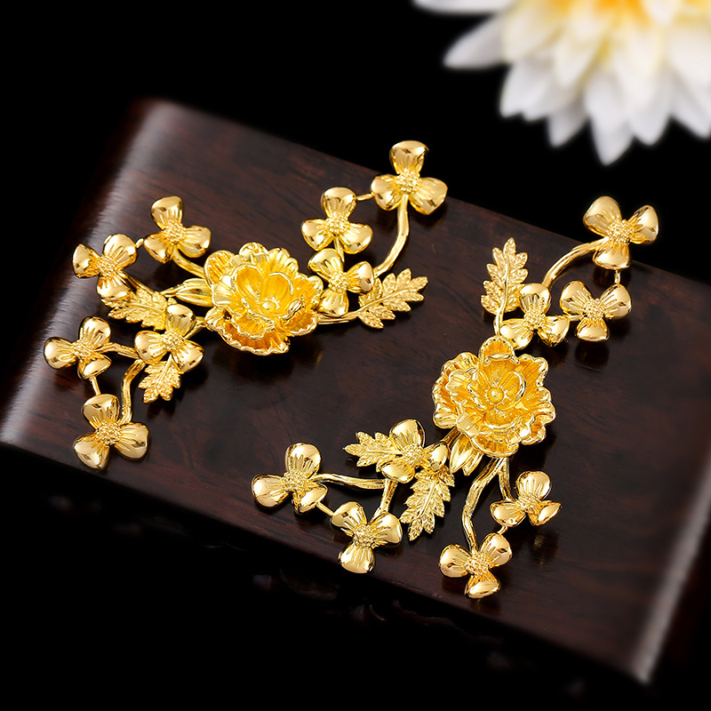 Accessoire de cheveux résultats bricolage, alliage de zinc, avec perle de plastique, fleur, Placage de couleur d'or, pour les enfants & avec strass, 24mm, Vendu par PC