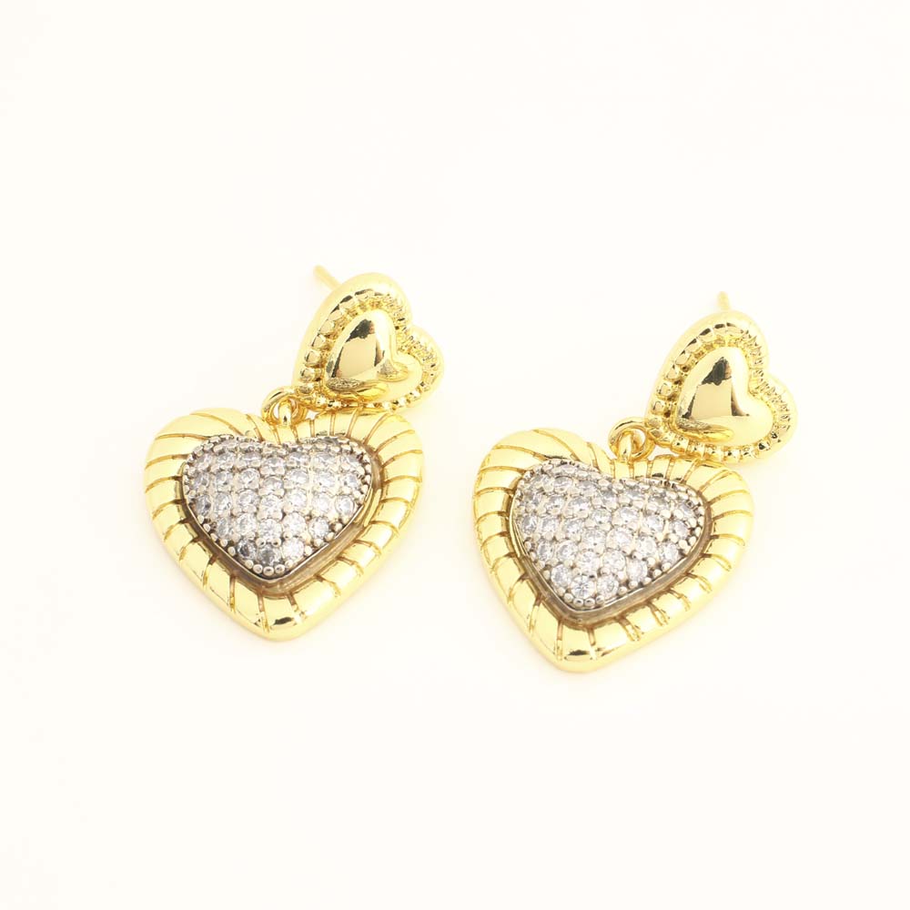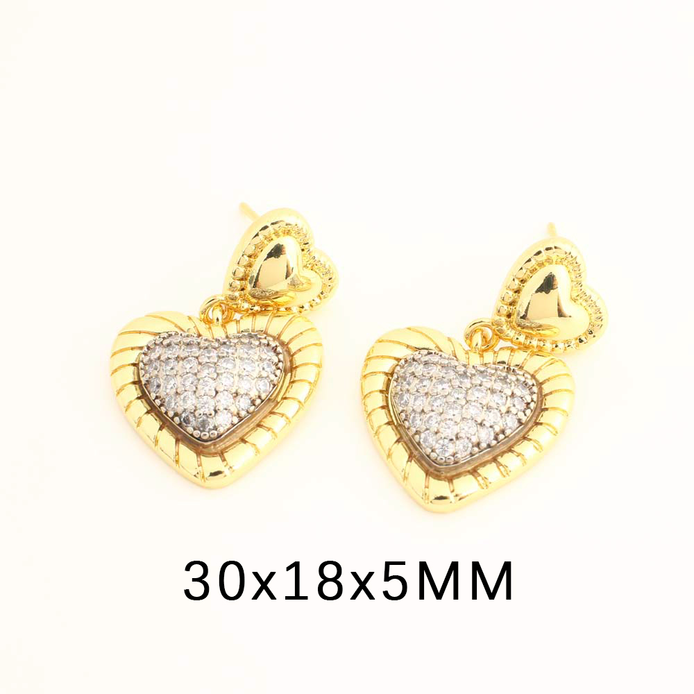 Boucles d'oreilles en laiton zircon cubique pavent, Plaqué de couleur d'or rose, pavé de micro zircon Vendu par paire