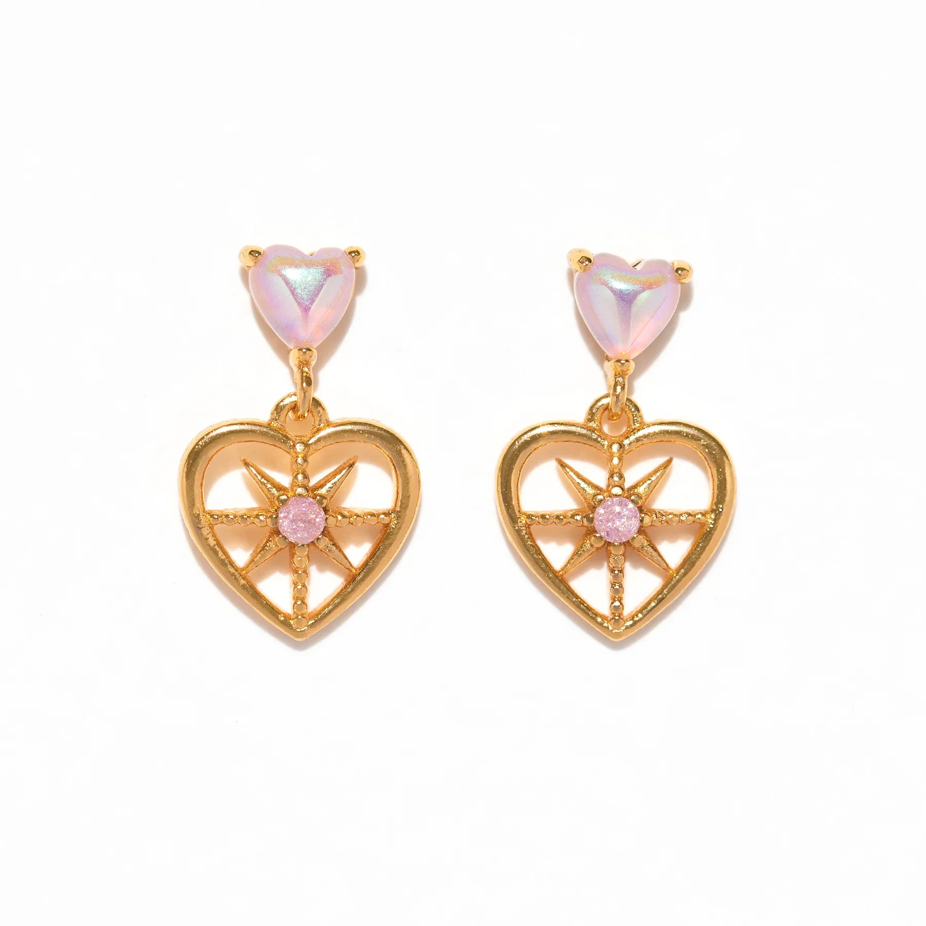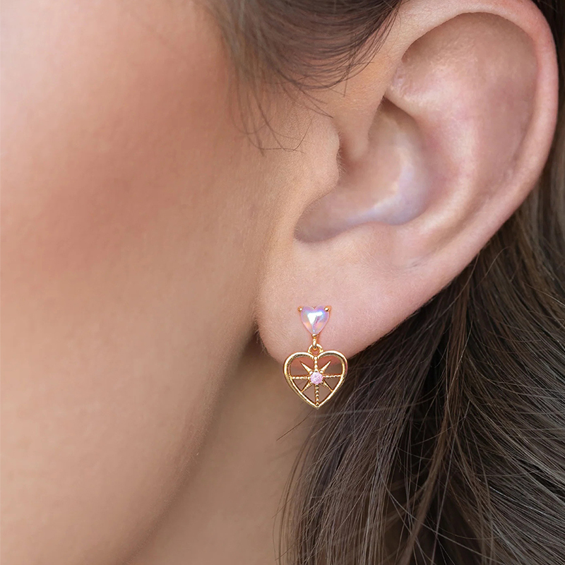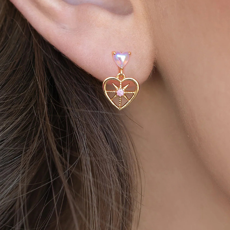 laiton Boucle d'oreille goutte, avec perle de plastique, coeur, Placage de couleur d'or, pour femme & avec strass & creux, 11x13mm, Vendu par paire