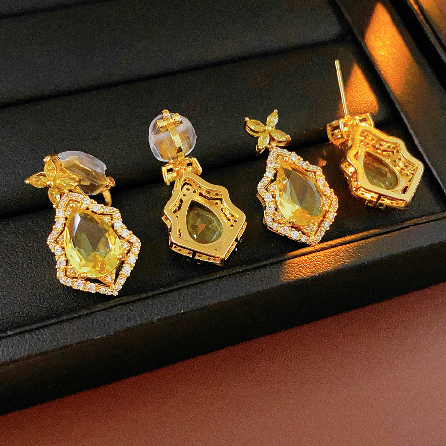 laiton Boucle d'oreille goutte, Motif géométrique, Placage de couleur d'or, styles différents pour le choix & pavé de micro zircon & pour femme, 10x30mm, Vendu par paire