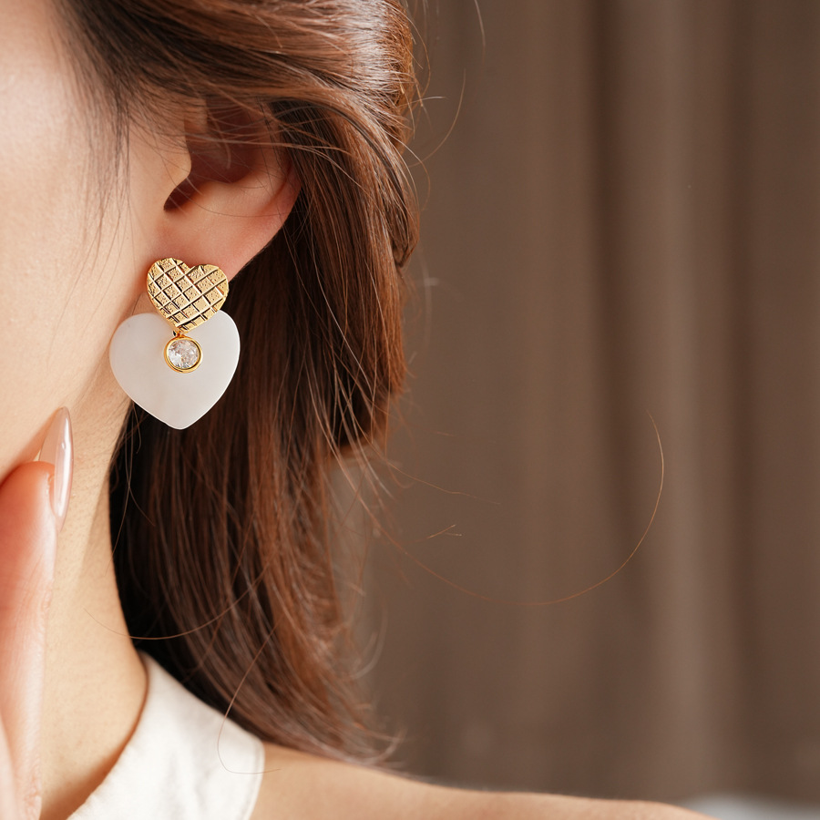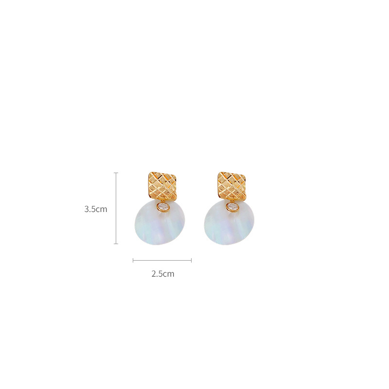 laiton Boucle d'oreille goutte, avec coquille blanche, Placage de couleur d'or, styles différents pour le choix & pavé de micro zircon & pour femme, earring length 20-50mm, Vendu par paire