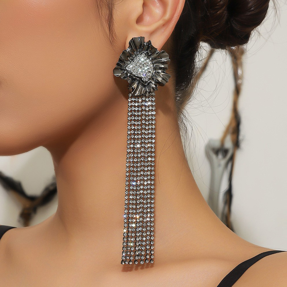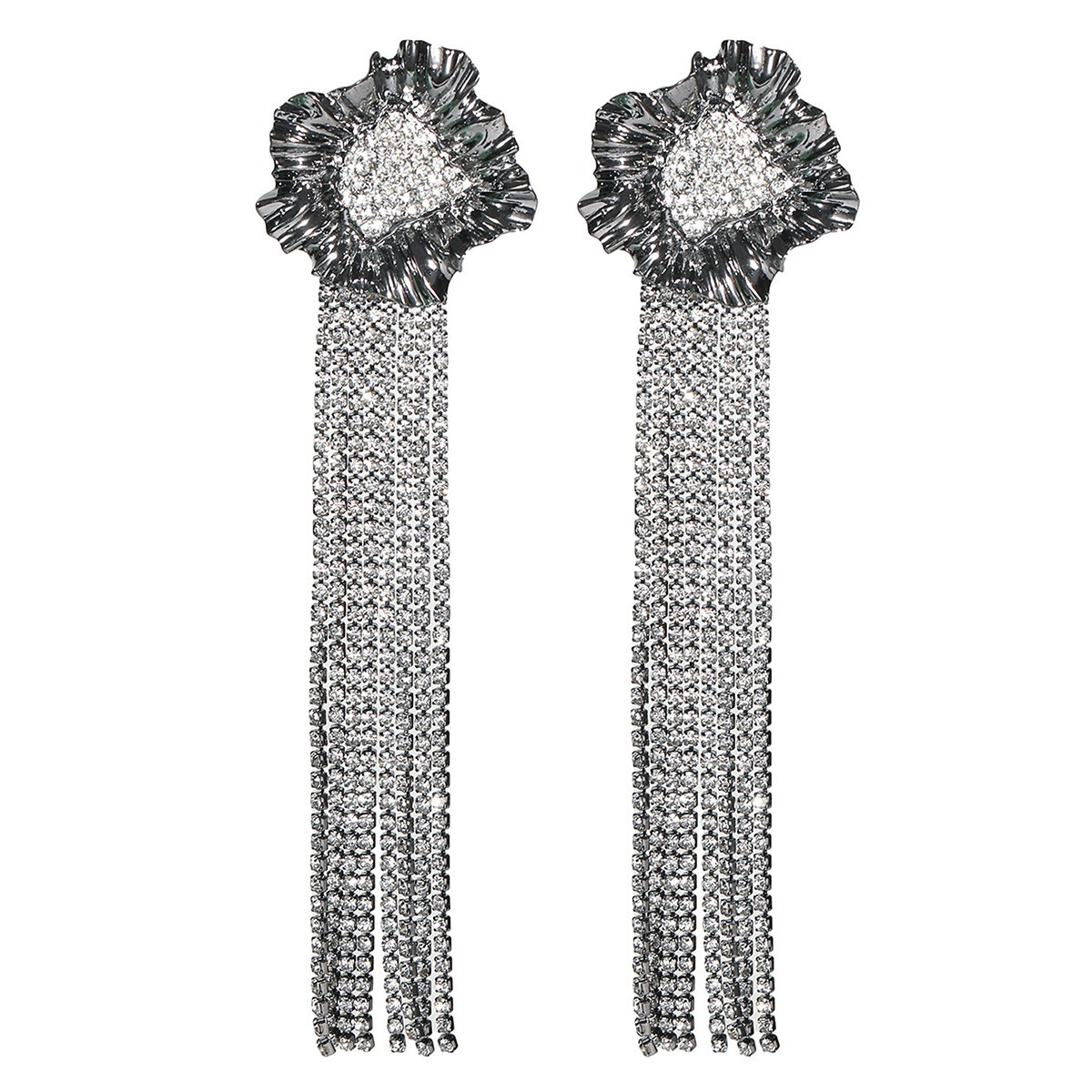Boucle d'oreille goutte laiton strass, fer boucle d'oreille crochet, Placage de couleur platine, avec strass Environ 5.24 pouce, Vendu par paire