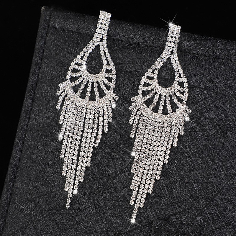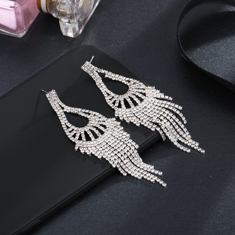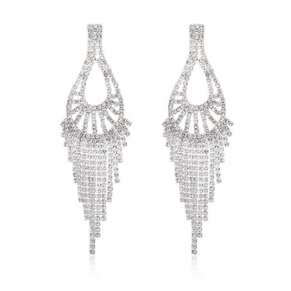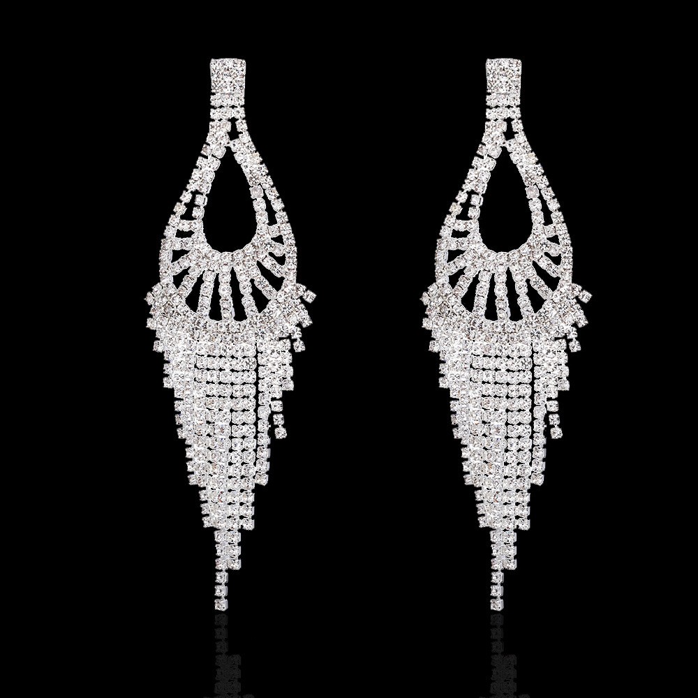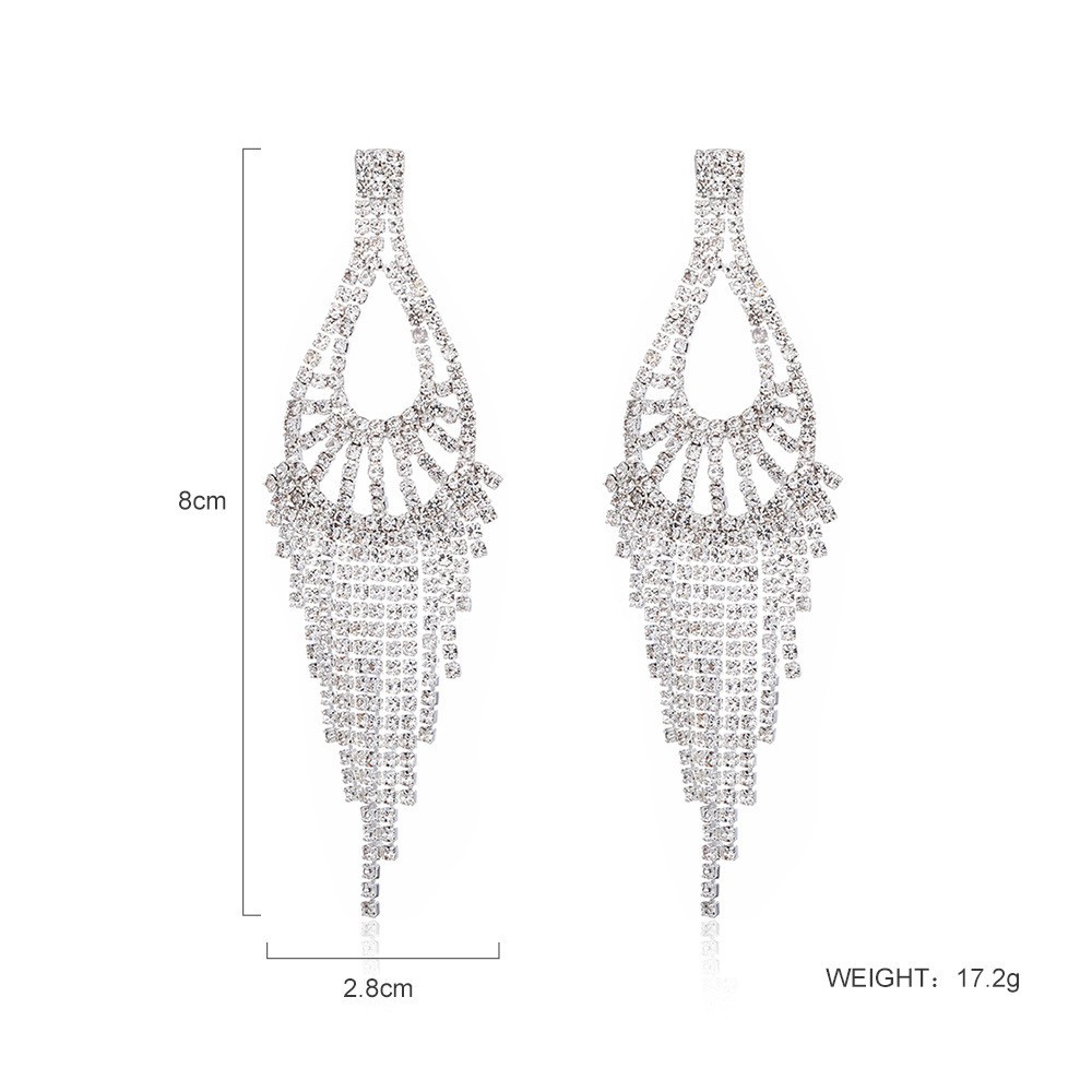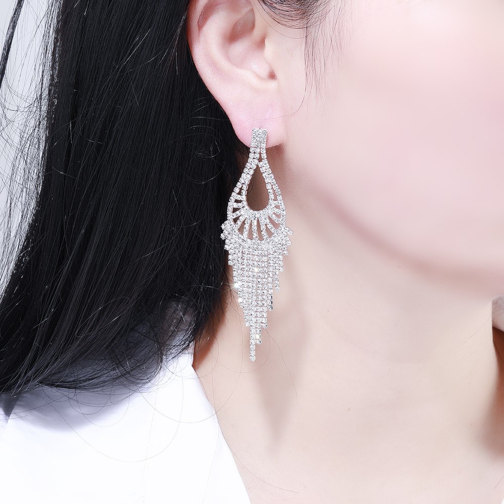 Boucle d'oreille goutte laiton strass, fer boucle d'oreille crochet, Placage de couleur platine, avec strass Environ 5.24 pouce, Vendu par paire