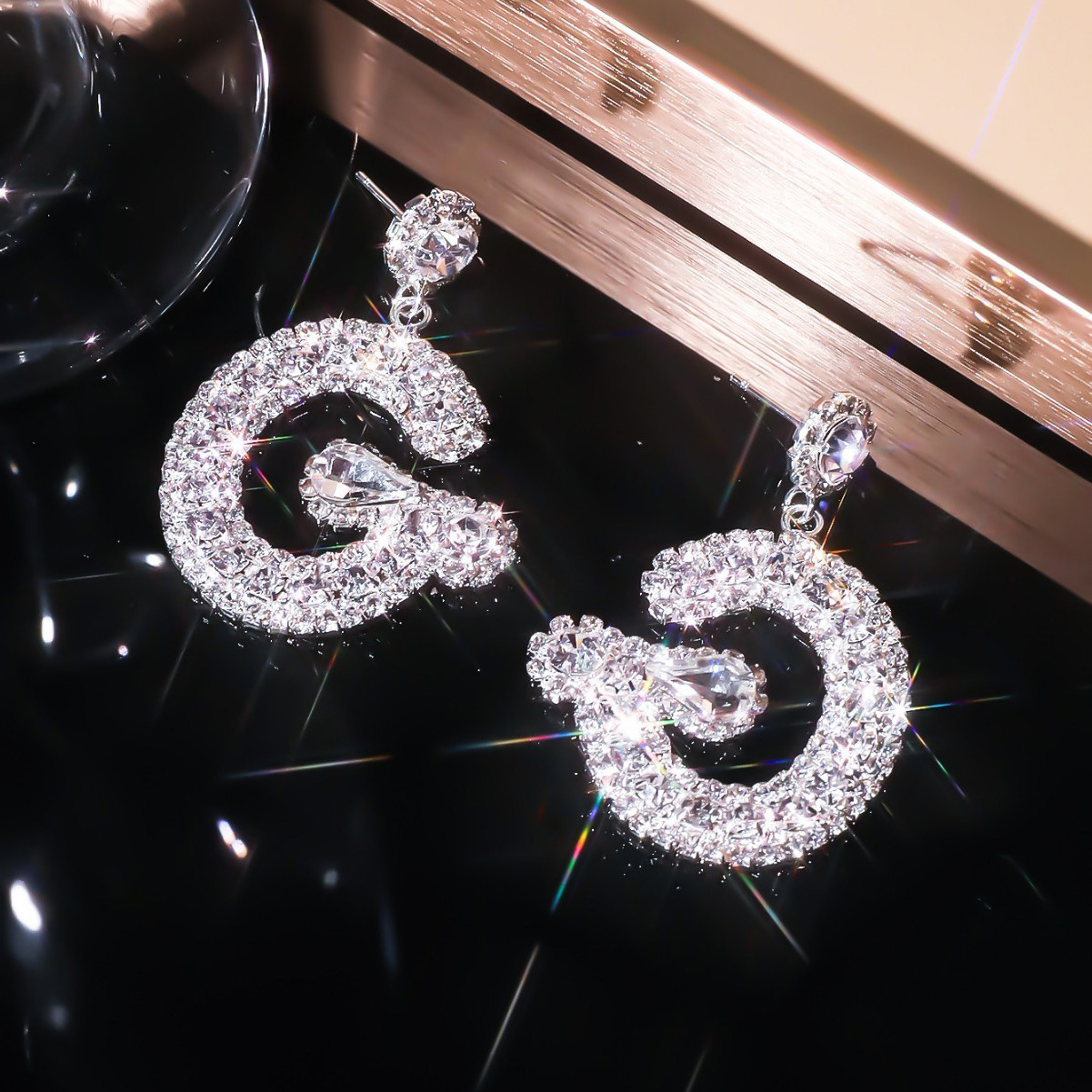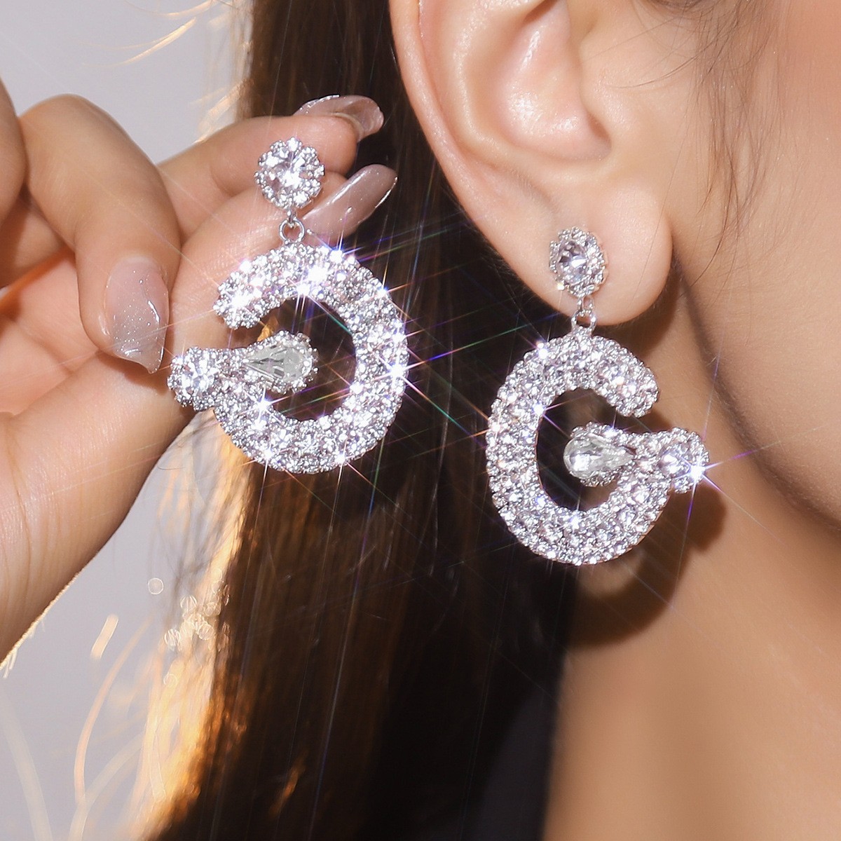 laiton Boucle d'oreille goutte, bijoux de mode & pour femme & avec strass, argent, Vendu par paire