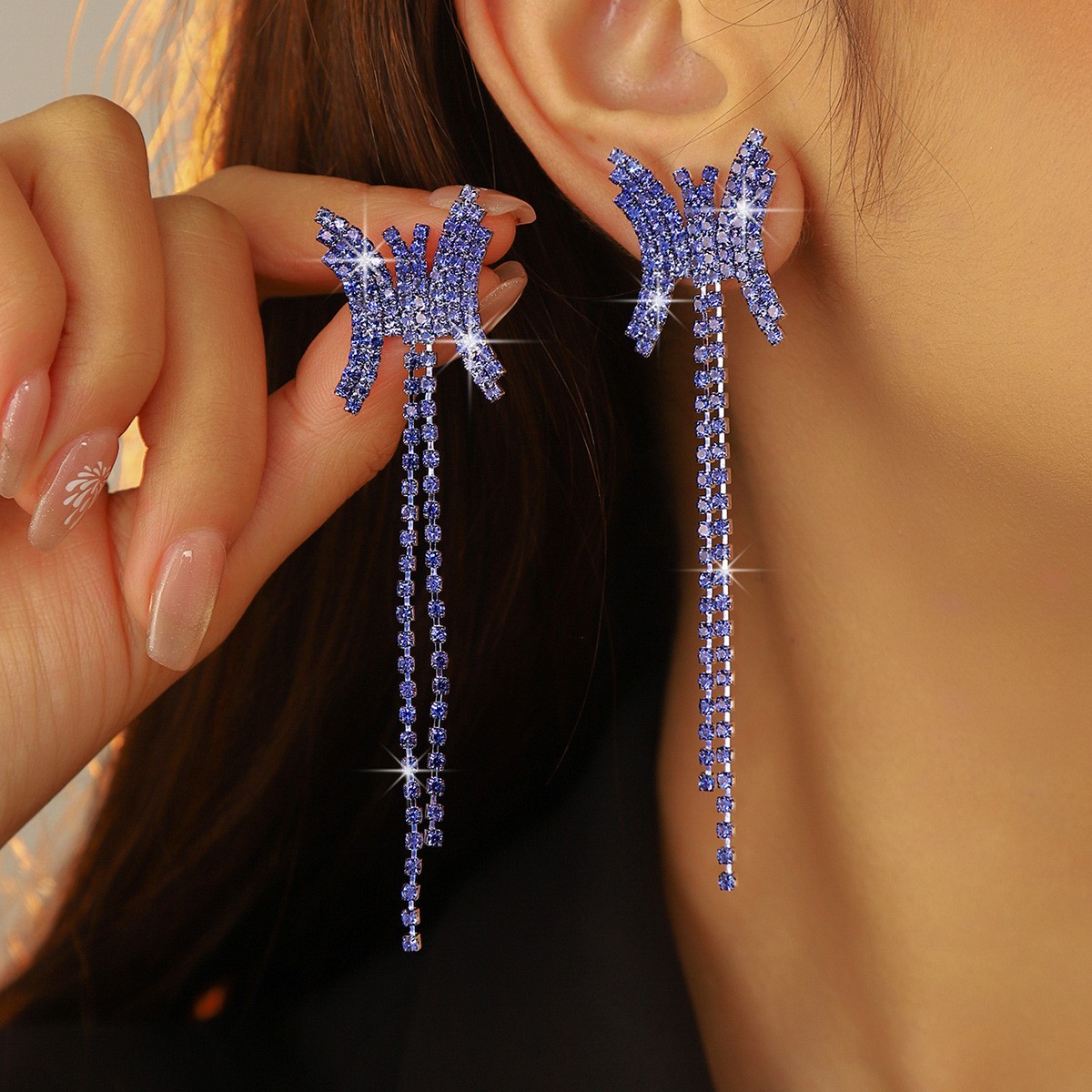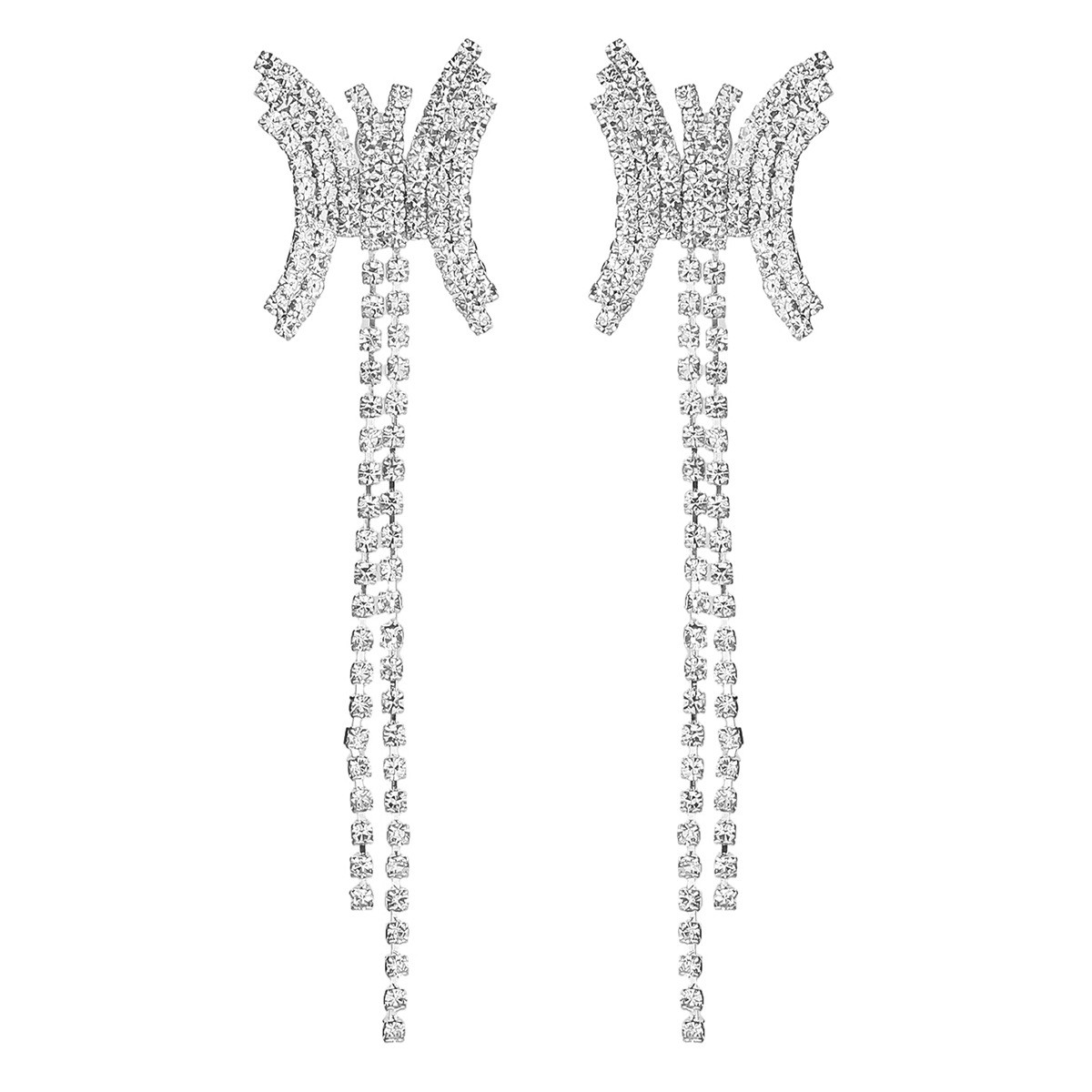 Boucle d'oreille goutte laiton strass, fer boucle d'oreille crochet, Placage de couleur platine, avec strass Environ 5.24 pouce, Vendu par paire