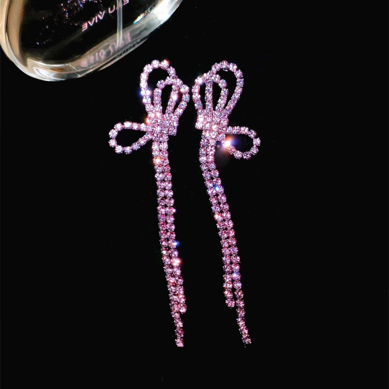 Boucle d'oreille goutte laiton strass, fer boucle d'oreille crochet, Placage de couleur platine, avec strass Environ 5.24 pouce, Vendu par paire