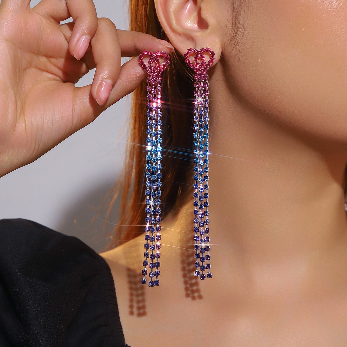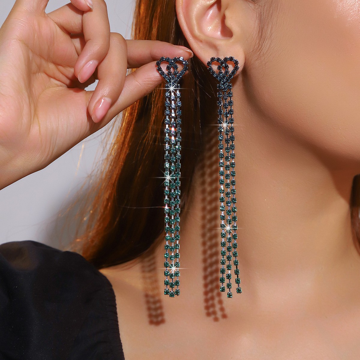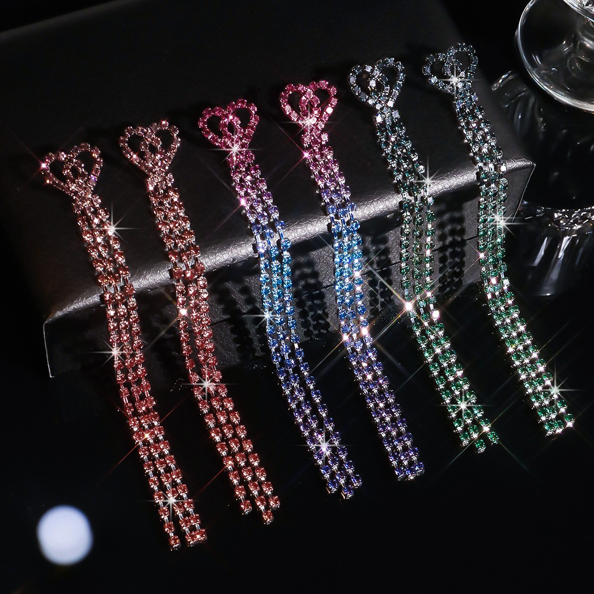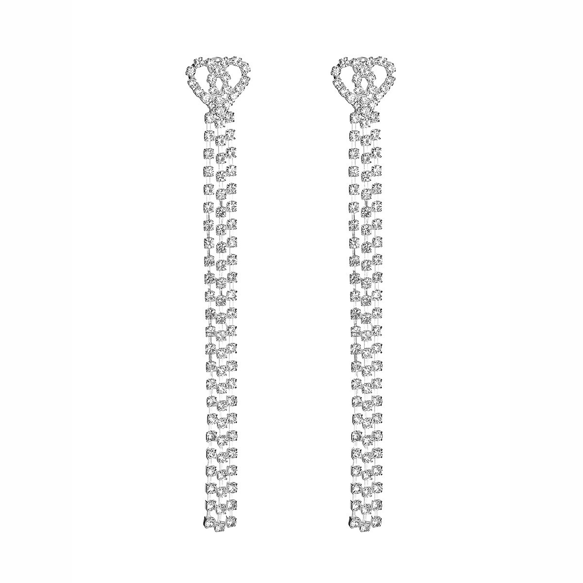 Boucle d'oreille goutte laiton strass, fer boucle d'oreille crochet, Placage de couleur platine, avec strass Environ 5.24 pouce, Vendu par paire