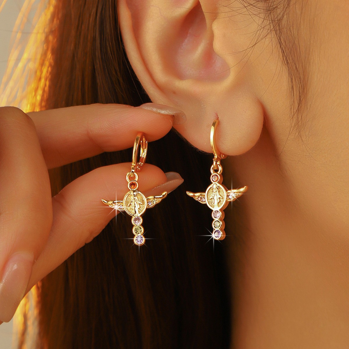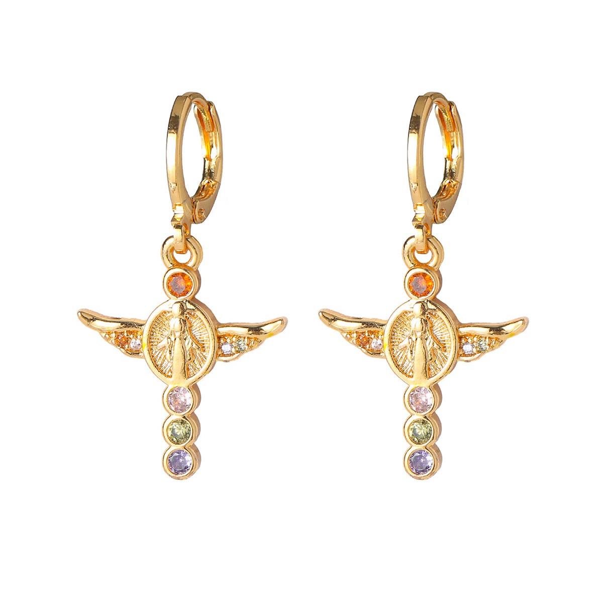 laiton Dessin animé Split boucle d'oreille, avec zircon cubique, cube, plaqué de couleur d'or KC, pour femme & facettes, protéger l'environnement, sans nickel, plomb et cadmium Vendu par lot