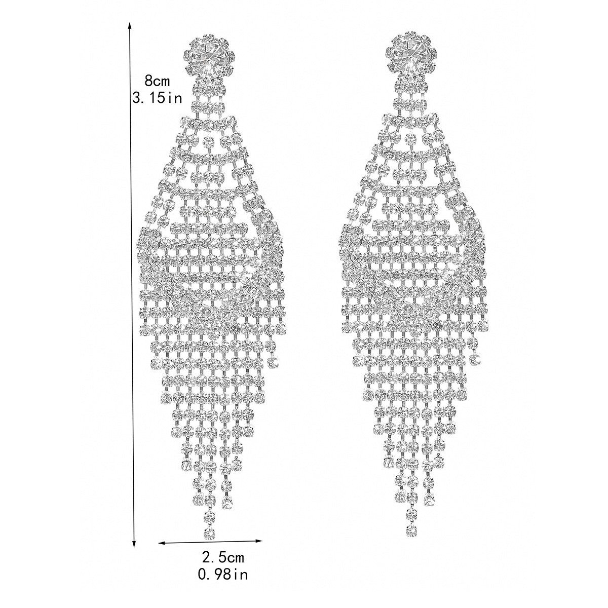 Boucle d'oreille goutte laiton strass, fer boucle d'oreille crochet, Placage de couleur platine, avec strass Environ 5.24 pouce, Vendu par paire