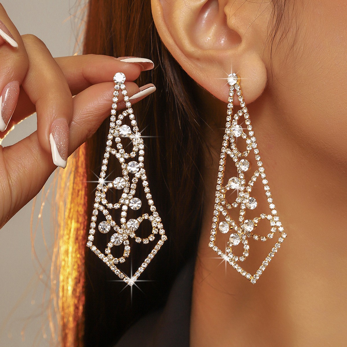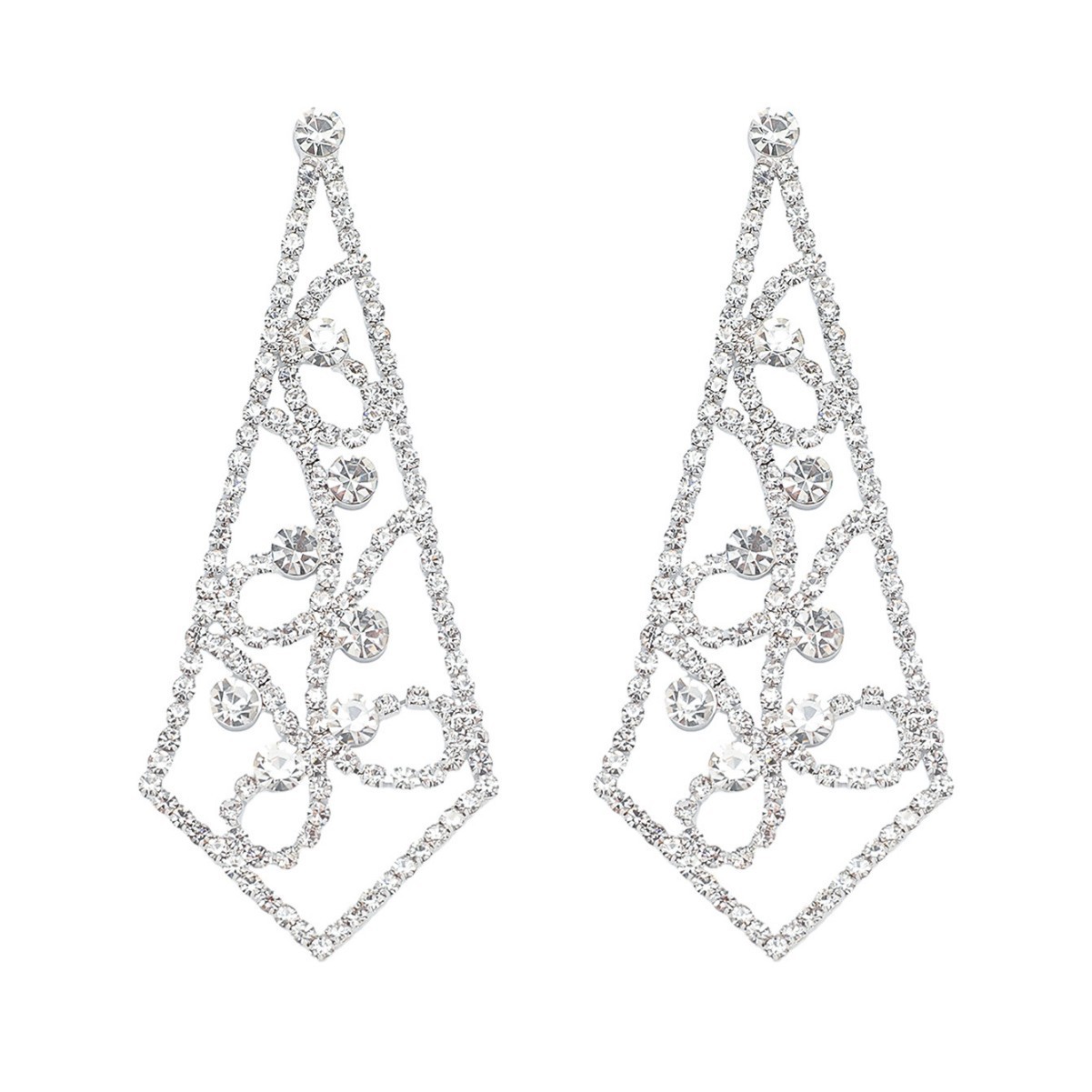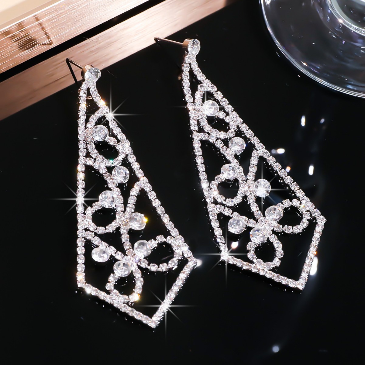Boucle d'oreille goutte laiton strass, fer boucle d'oreille crochet, Placage de couleur platine, avec strass Environ 5.24 pouce, Vendu par paire
