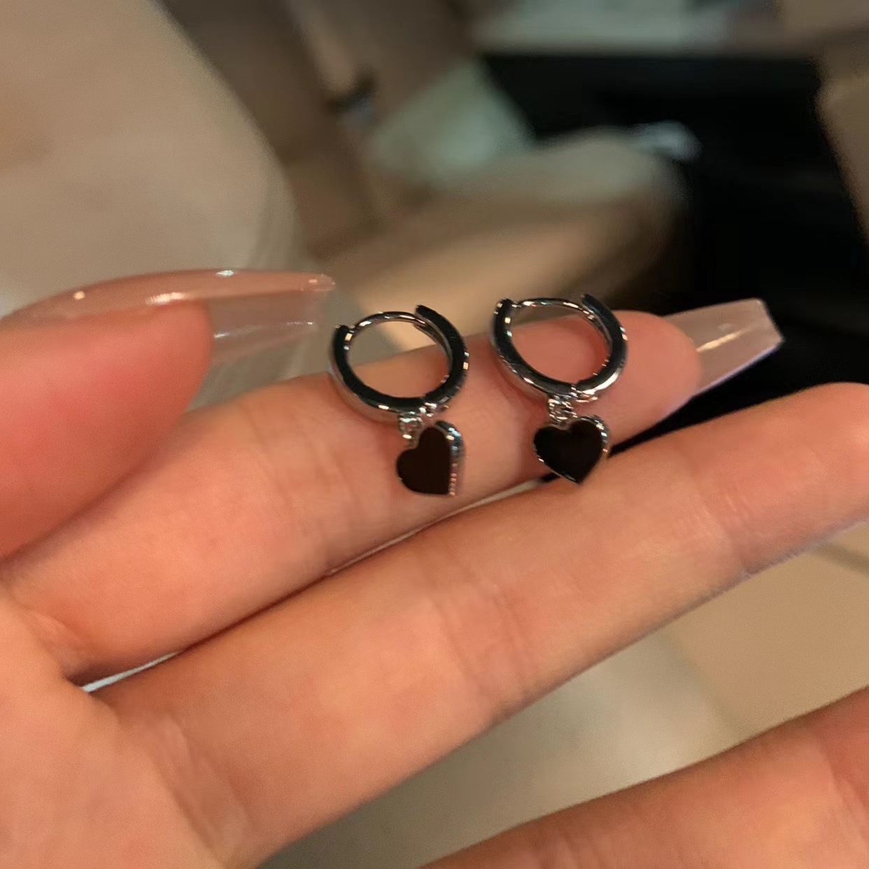 laiton Boucles d'oreilles pendantes Hoop Huggie, coeur, Placage de couleur argentée, bijoux de mode & pour femme, 10x20mm, Vendu par paire