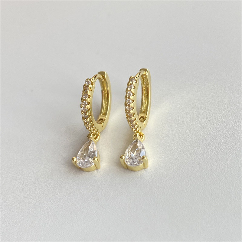 laiton Boucles d'oreilles pendantes Hoop Huggie, larme, Placage de couleur d'or, pavé de micro zircon & pour femme, 10x20mm, Vendu par paire
