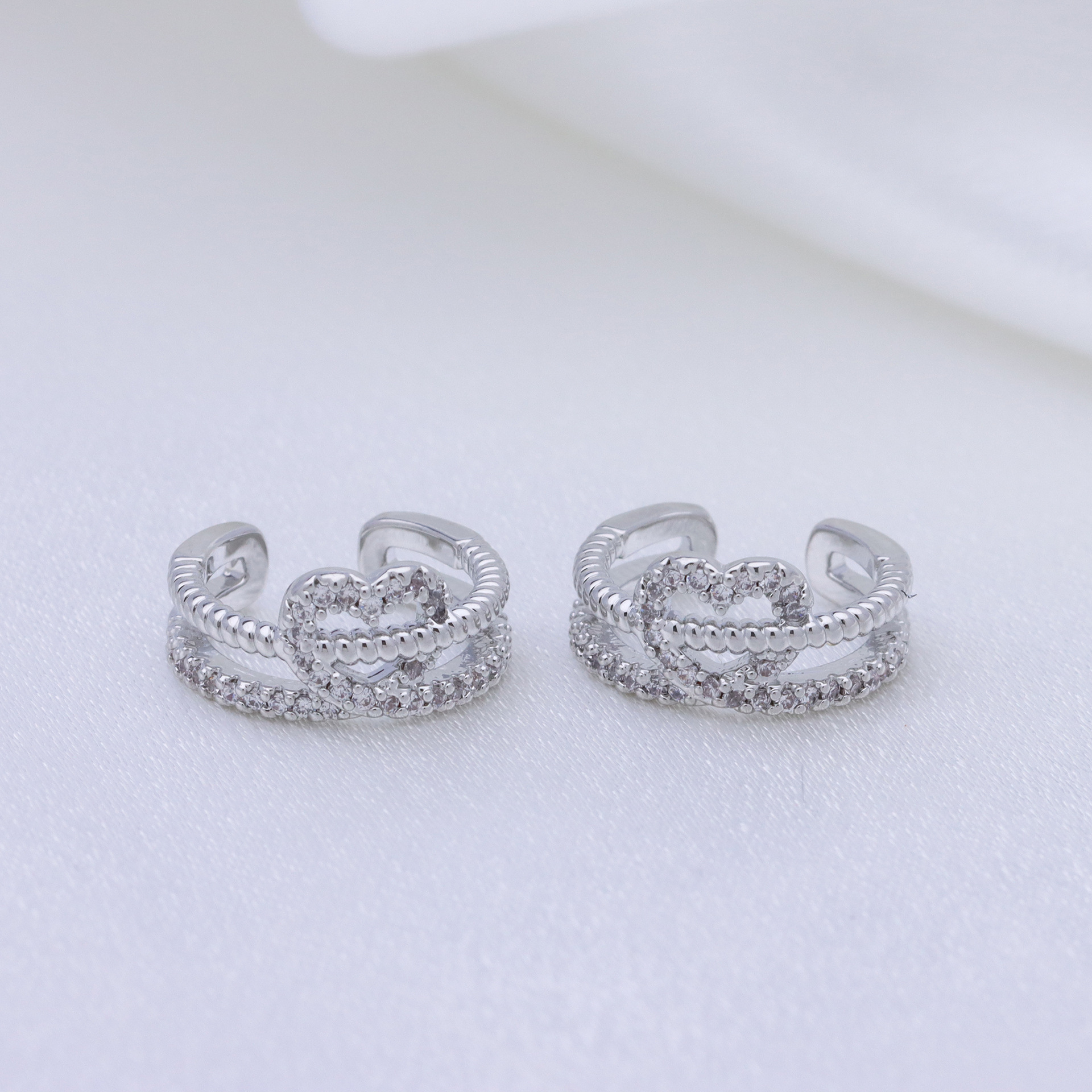 laiton Clip boucle d’oreille, coeur, Placage, pavé de micro zircon & pour femme, plus de couleurs à choisir, 16x7mm, Vendu par paire