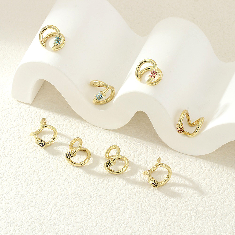 laiton Clip boucle d’oreille, Placage de couleur d'or, bijoux de mode & pavé de micro zircon & pour femme, plus de couleurs à choisir, 11x12x2mm, Vendu par paire