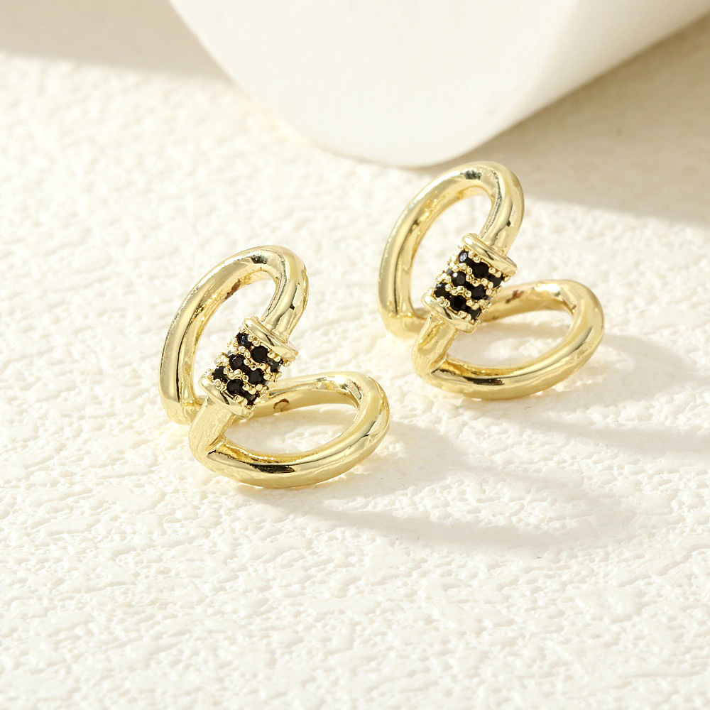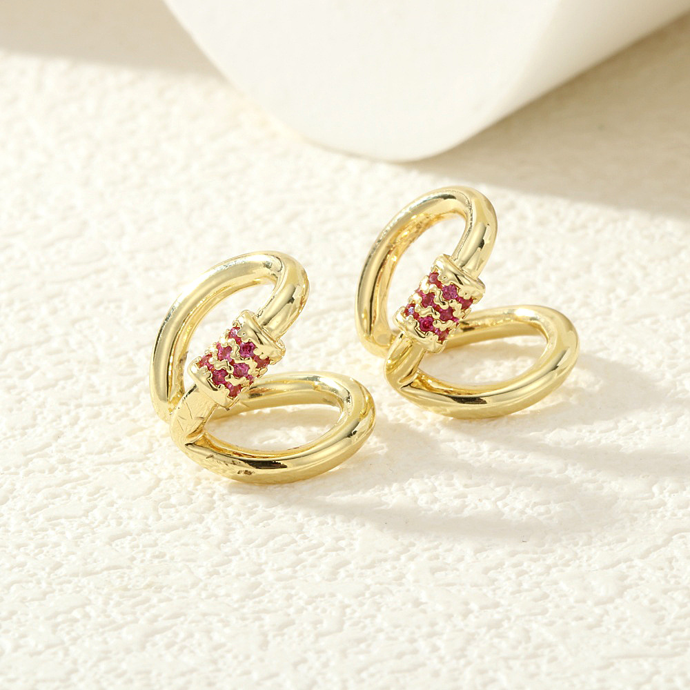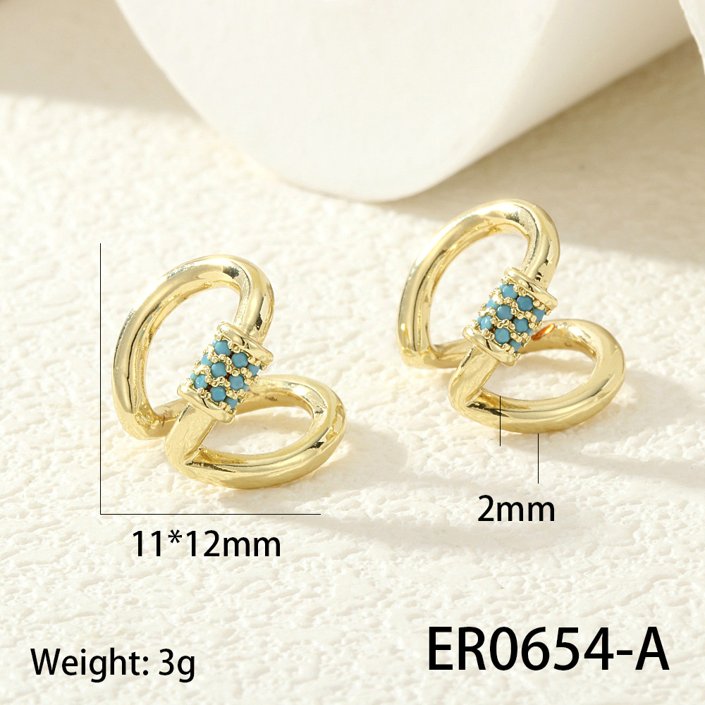 Boucles d'oreilles en laiton zircon cubique pavent, Plaqué de couleur d'or rose, pavé de micro zircon Vendu par paire