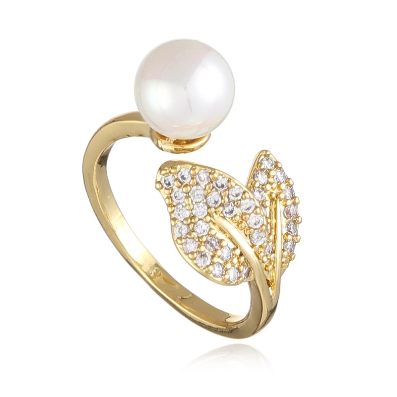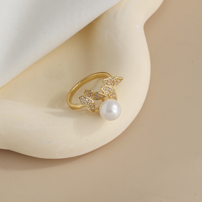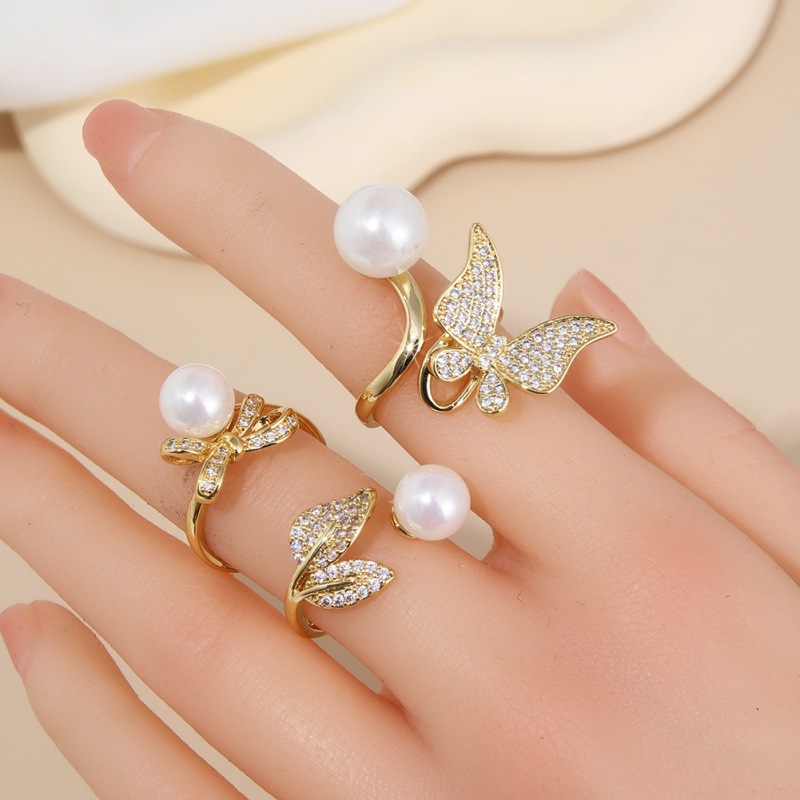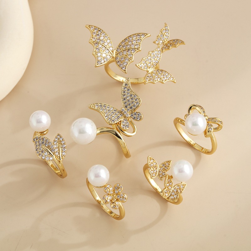 laiton Cuff Bague, avec perle de plastique, papillon, Placage de couleur d'or, styles différents pour le choix & pavé de micro zircon & pour femme, Taille:6-8, Vendu par PC