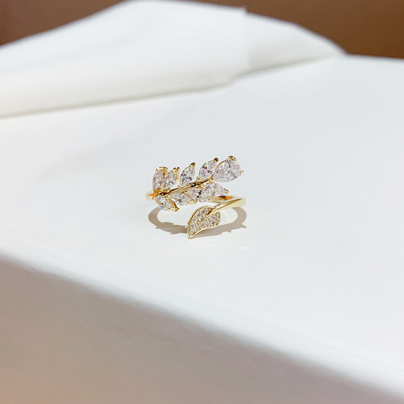 laiton Cuff Bague, feuille, bijoux de mode & pavé de micro zircon & pour femme, doré, Taille:7, Vendu par PC
