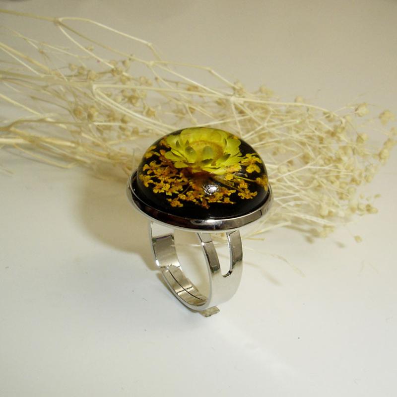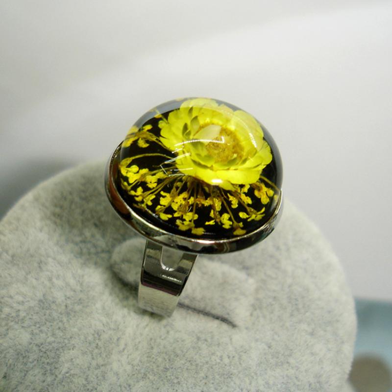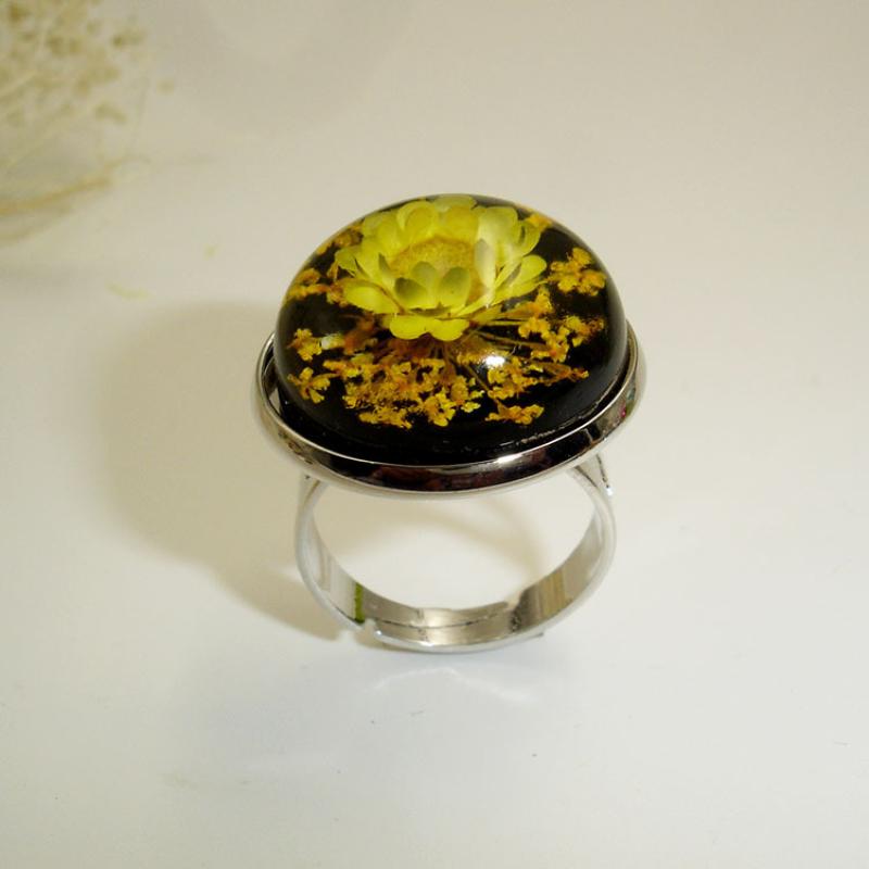 laiton Cuff Bague, avec Fleurs séchées & ambre, Placage de couleur platine, envoyé au hasard & pour femme & autocollant époxyde, Taille:7, 12PC/sac, Vendu par sac