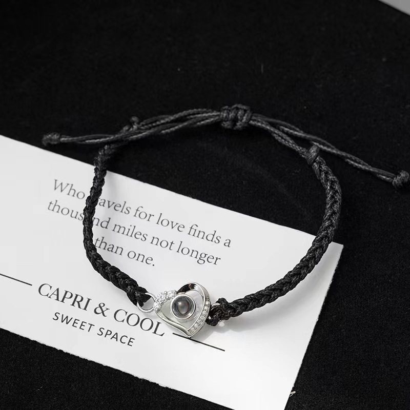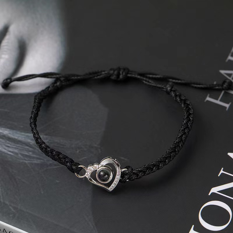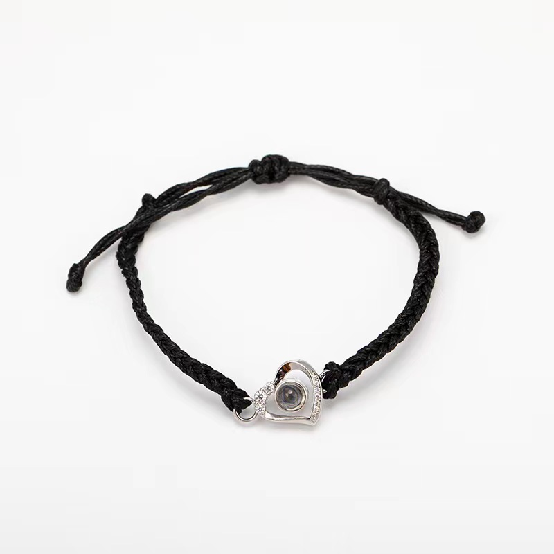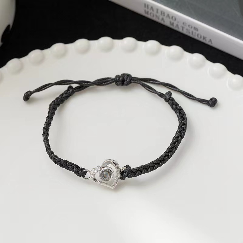laiton Miniature Projection Bracelet, avec corde de cire, coeur, Plaqué de platine, bijoux de mode & unisexe & avec strass, Longueur:Environ 6.7 pouce, Vendu par PC