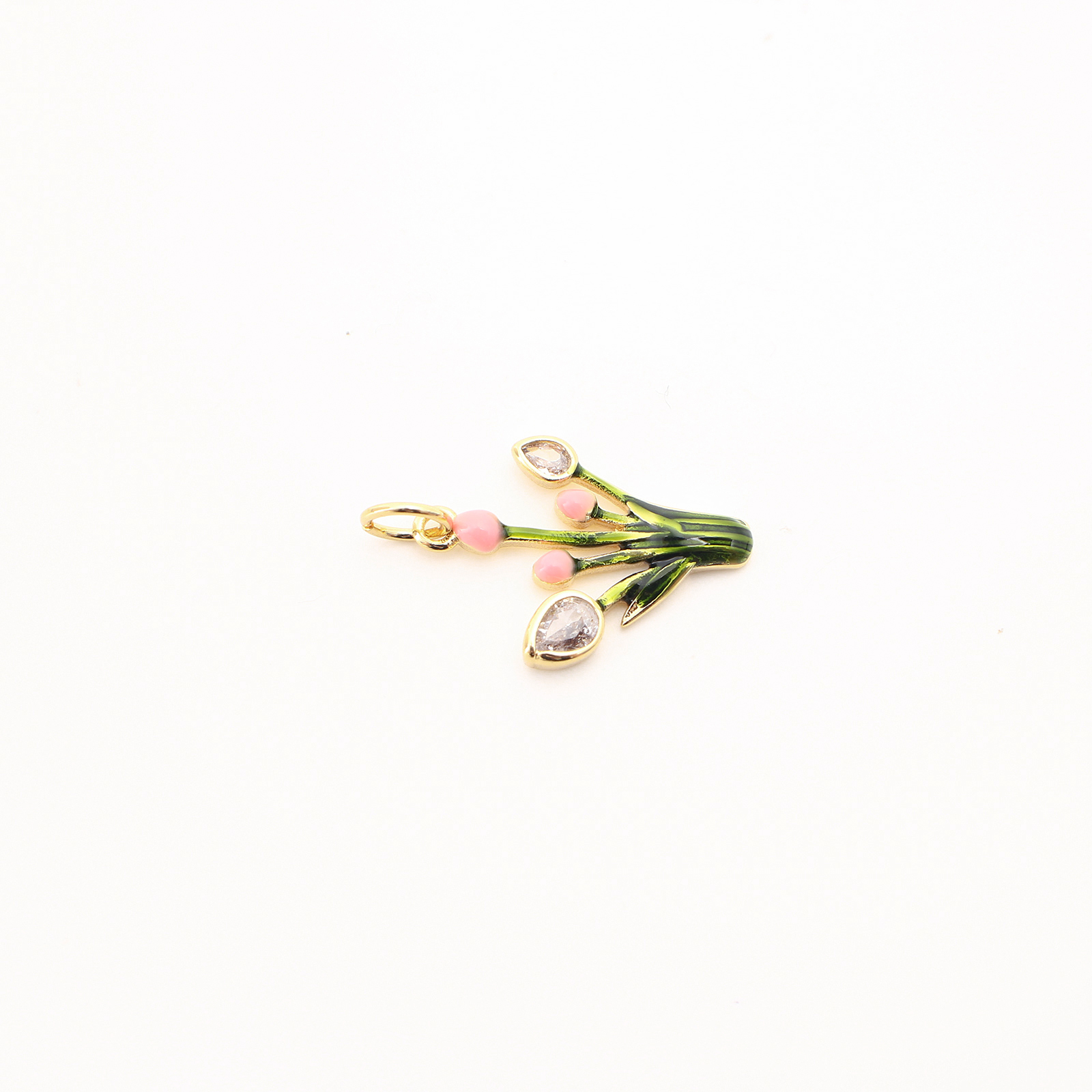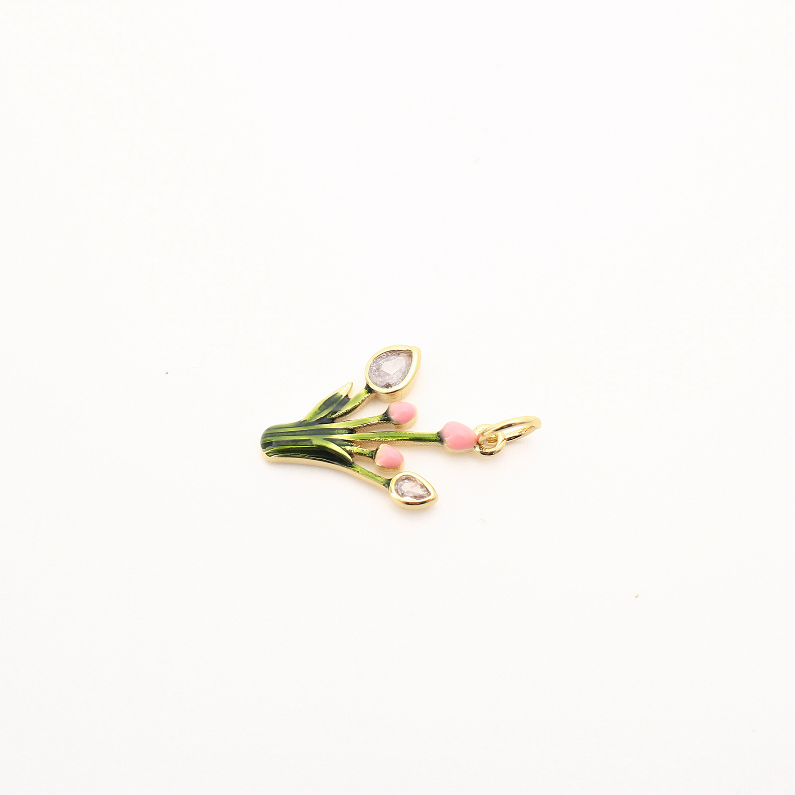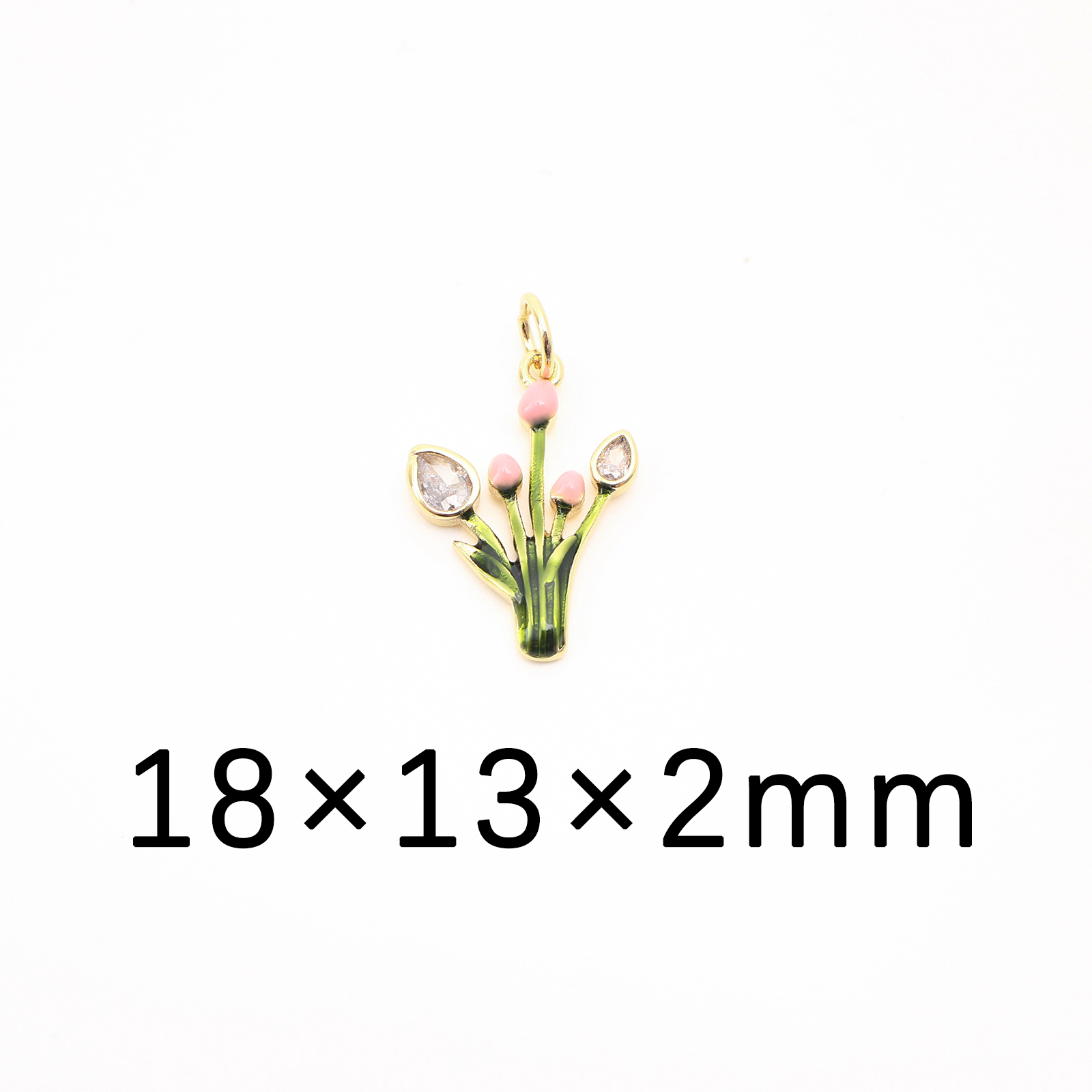 laiton Pendentif, Bouquet, DIY & pavé de micro zircon & émail, doré, 18x13x2mm, Vendu par PC