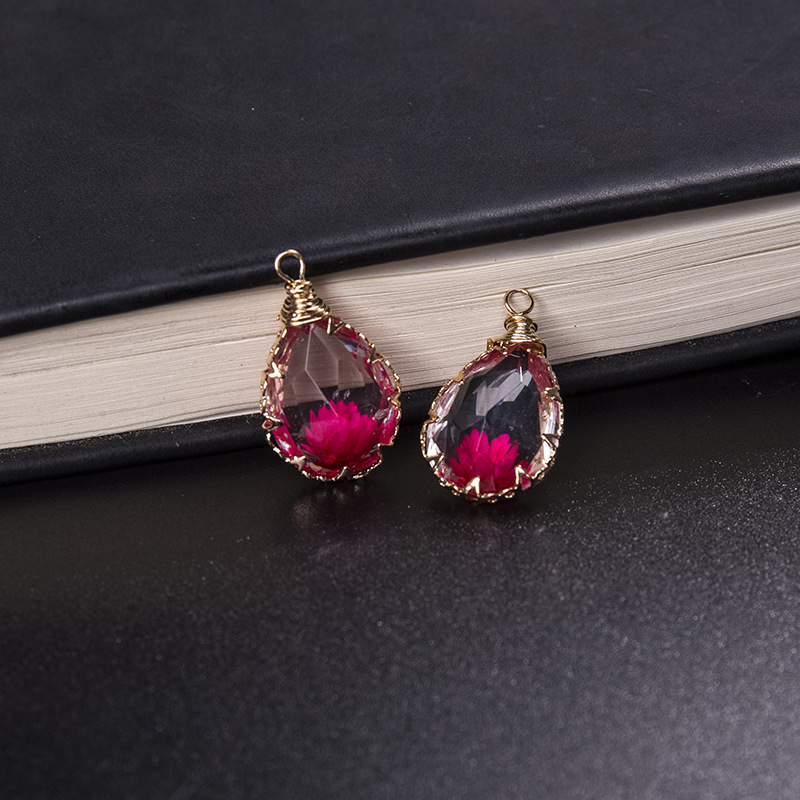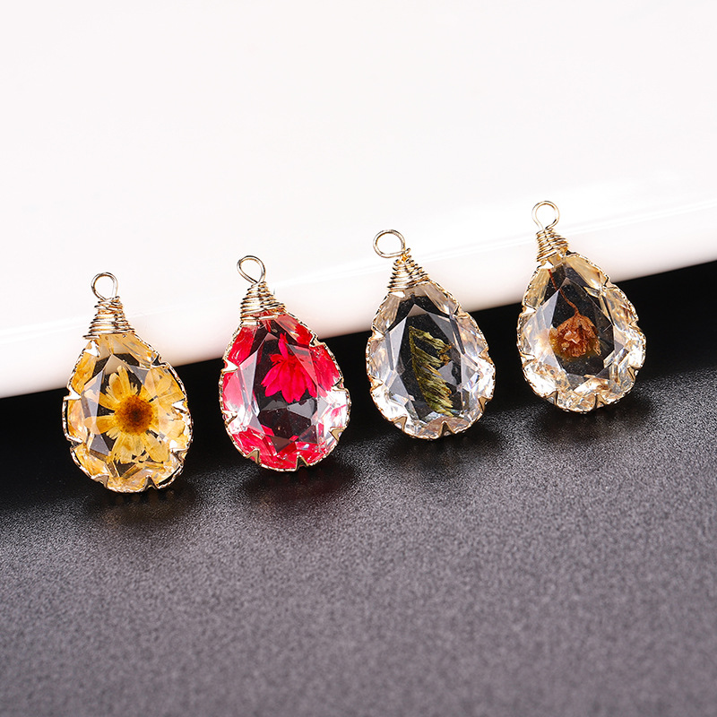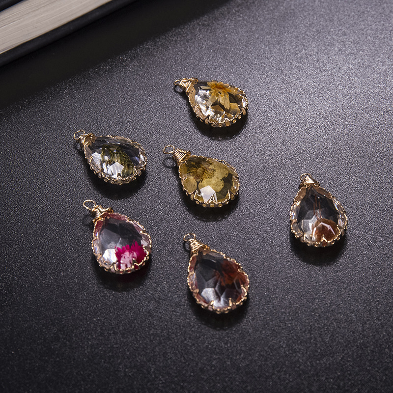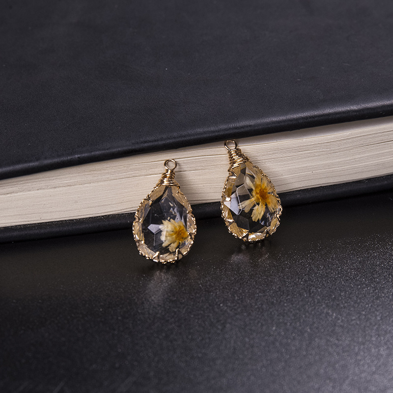 laiton Pendentif, avec Fleurs séchées & résine, larme, Placage, DIY, plus de couleurs à choisir, 13x18mm, Vendu par PC