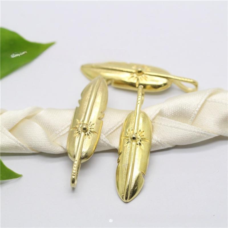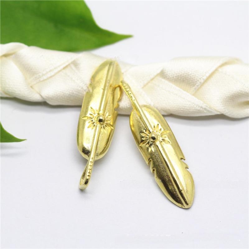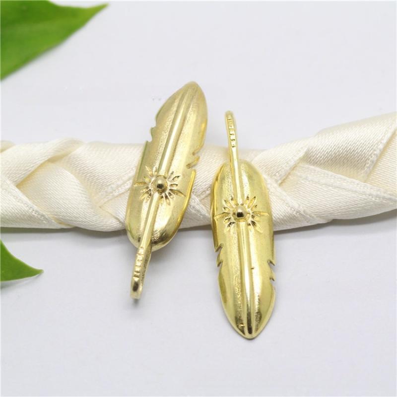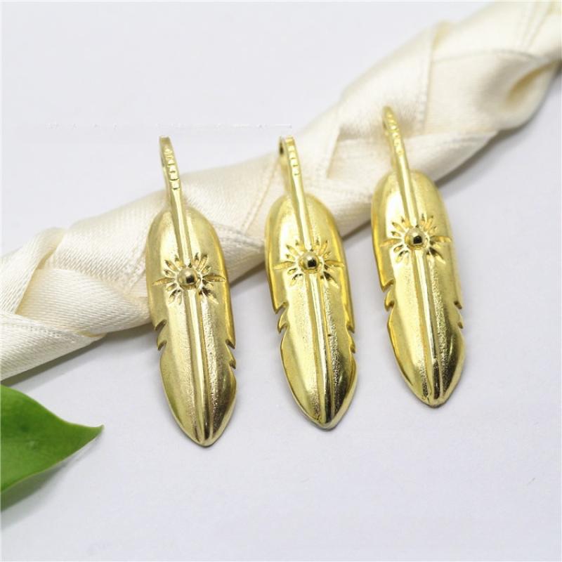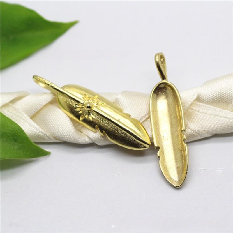 laiton Pendentif, forme de plume, Placage, DIY, couleur originale, 9x35mm, Vendu par PC
