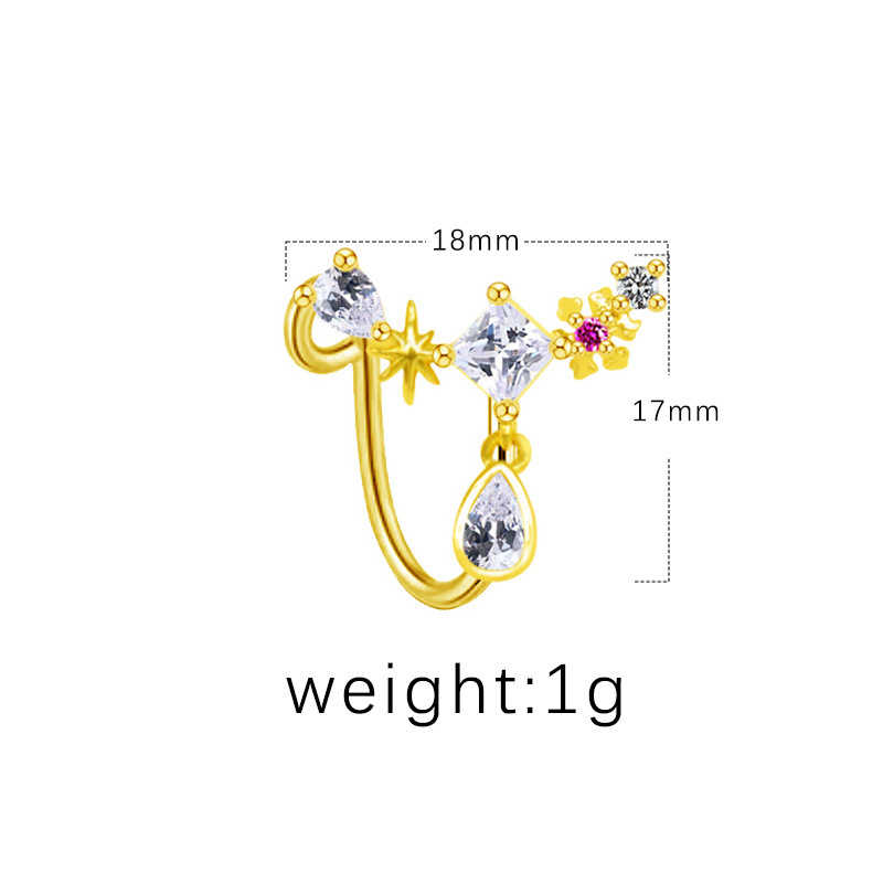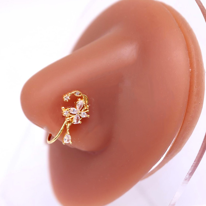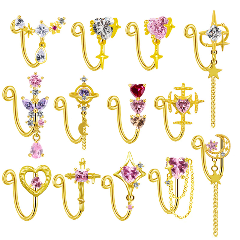 laiton Pince nasale, avec cristal & Acier inoxydable 304, Placage de couleur d'or, unisexe & styles différents pour le choix & avec strass, nose clip length 15-50mm, Vendu par PC