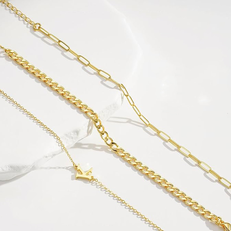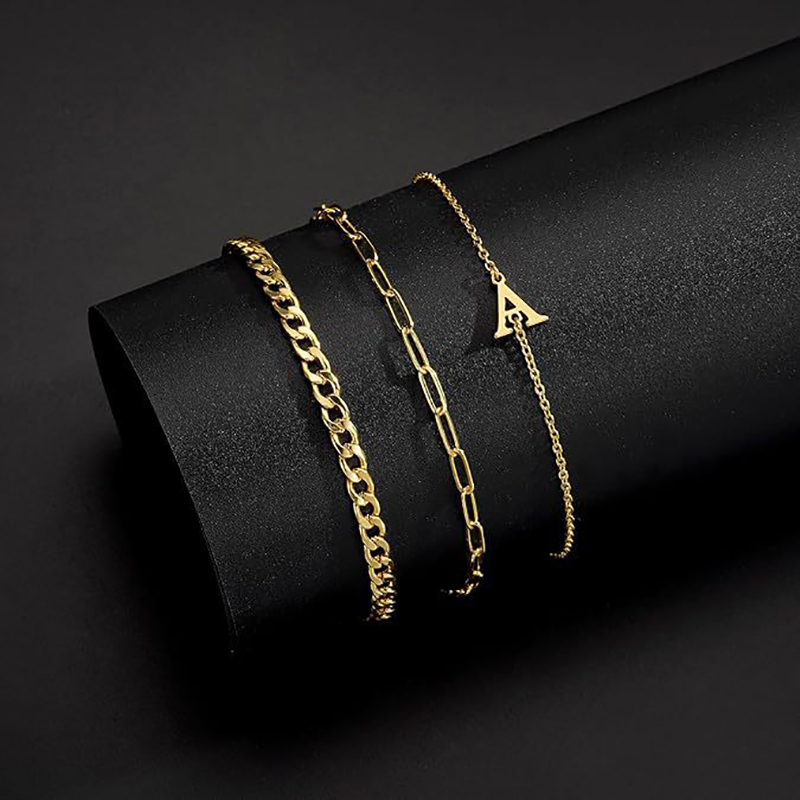 laiton Set de bracelet, Lettre d’alphabet, Plaqué d'or 14K, trois pièces & styles différents pour le choix & pour femme, Longueur:Environ 7.9 pouce, Vendu par fixé