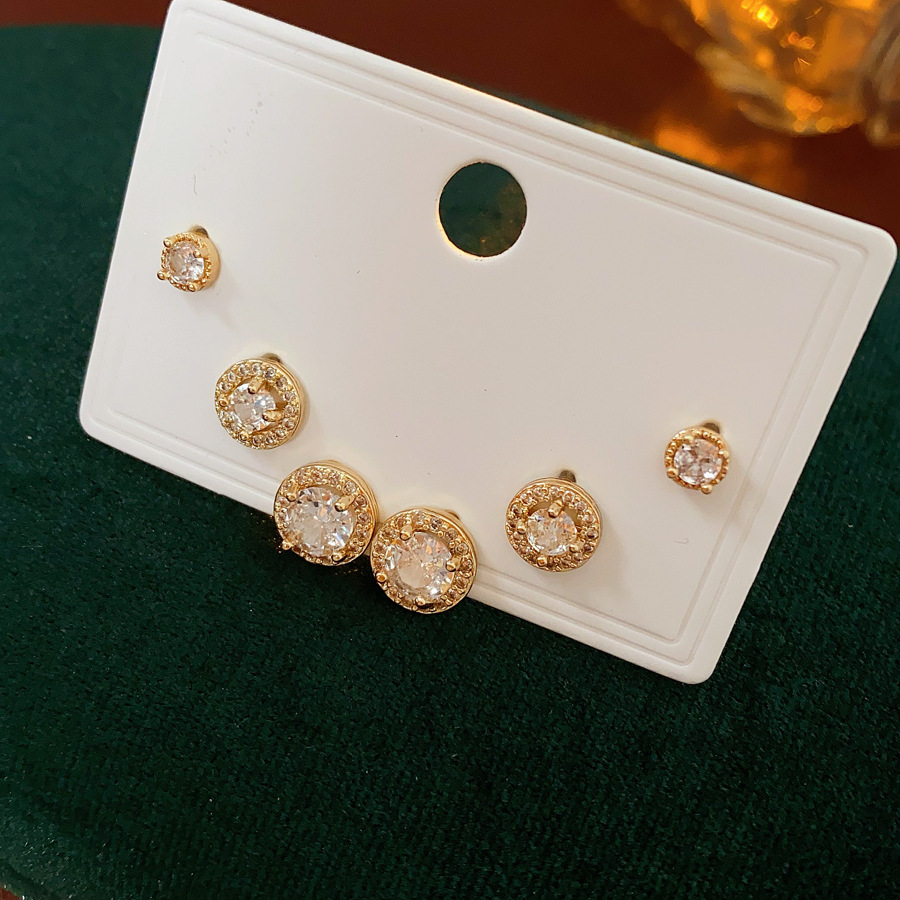 laiton Stud Set, Rond, Placage, 6 pièces & pavé de micro zircon & pour femme, plus de couleurs à choisir, 10x10mm, Vendu par fixé