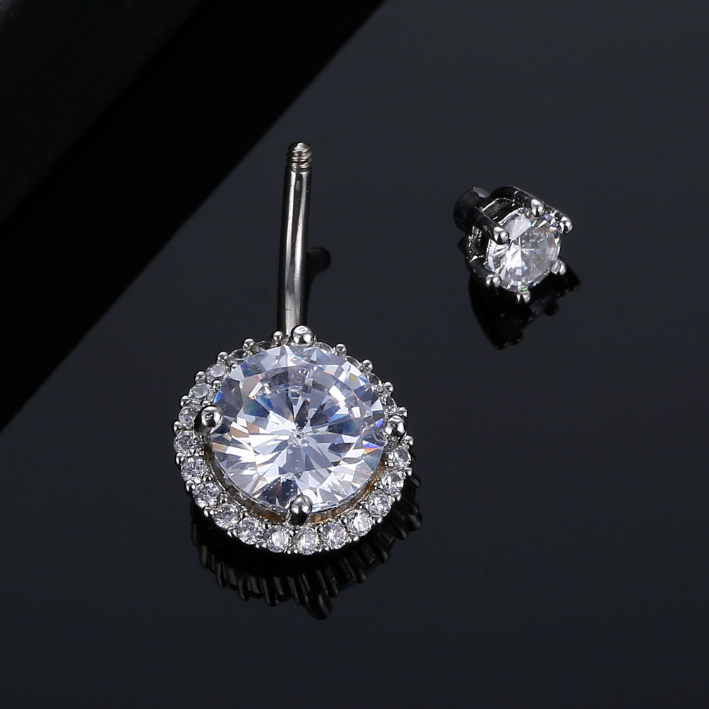 Anneau de ventre en acier inoxydable, acier inoxydable 316L, Rond, avec strass, plus de couleurs à choisir Vendu par lot