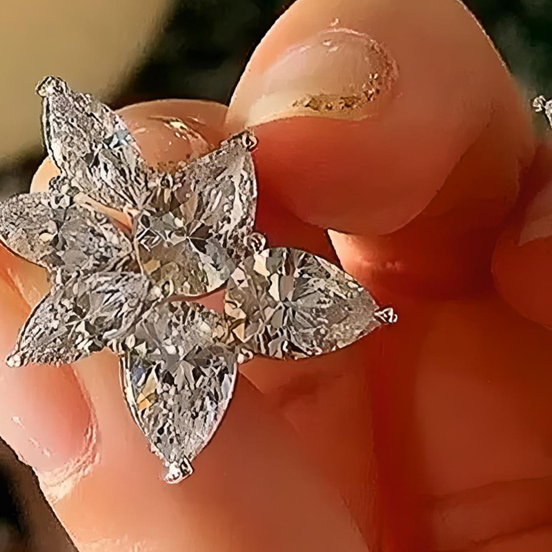 Boucles d'oreilles en laiton zircon cubique pavent, fleur, Plaqué d'or rose, pavé de micro zircon & pour femme Vendu par paire