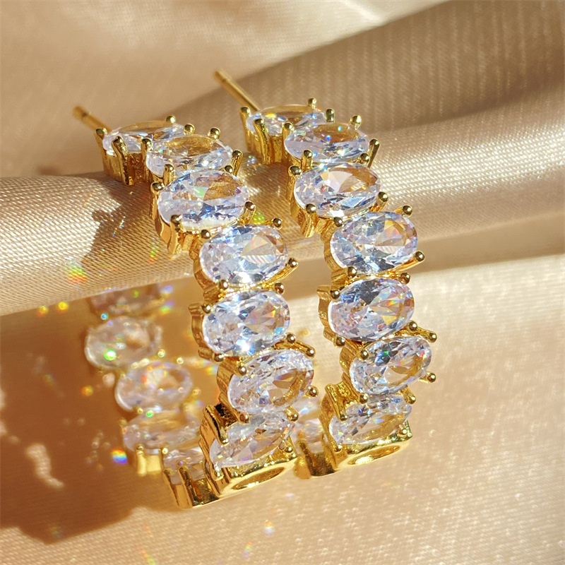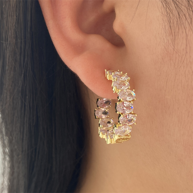 Boucles d'oreilles en laiton zircon cubique pavent, Plaqué de couleur d'or rose, pavé de micro zircon Vendu par paire