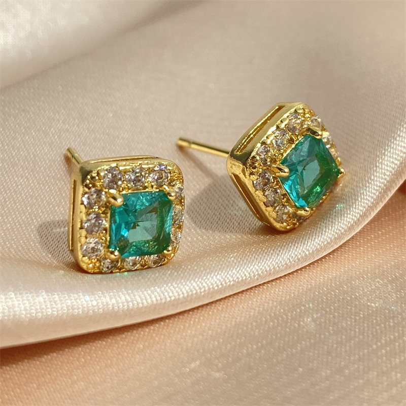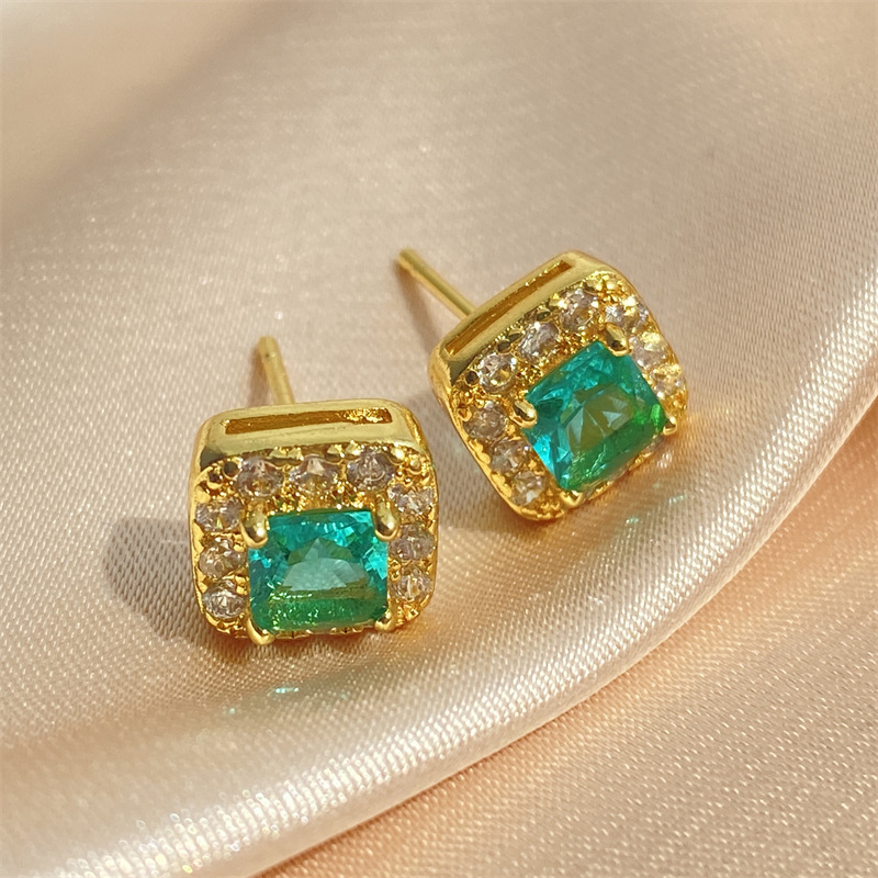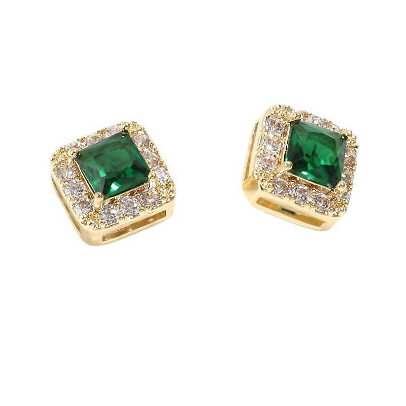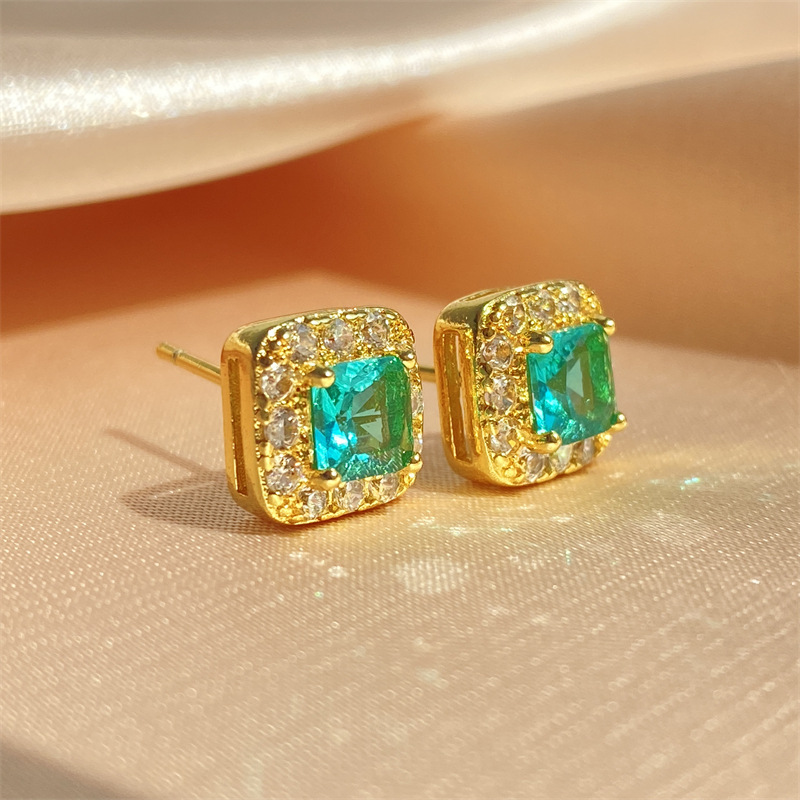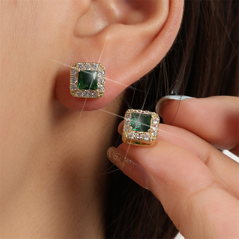 Boucles d'oreilles en laiton zircon cubique pavent, Plaqué de couleur d'or rose, pavé de micro zircon Vendu par paire