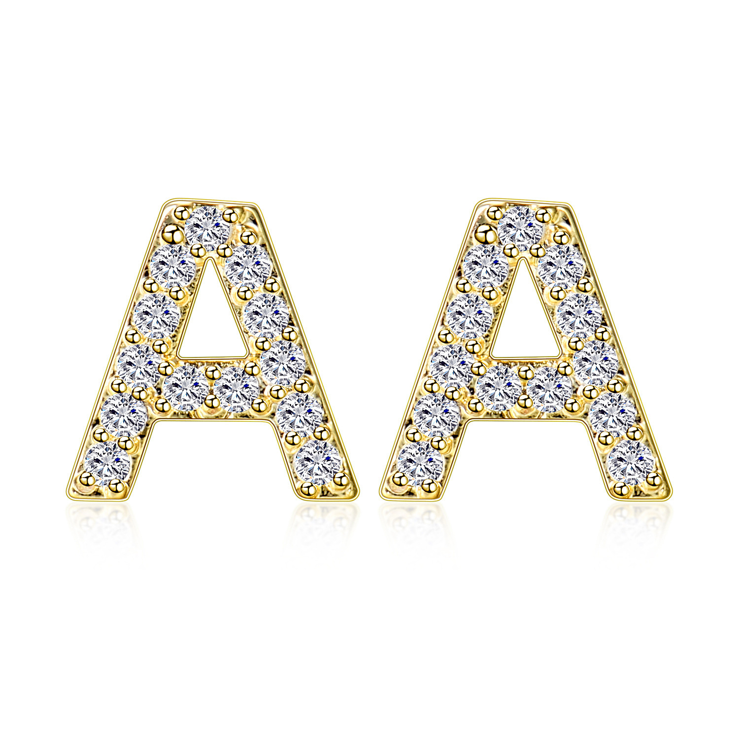 laiton boucle d oreille dormeuse, Lettre d’alphabet, Placage, styles différents pour le choix & pavé de micro zircon & pour femme, earring length 5-10mm, Vendu par paire